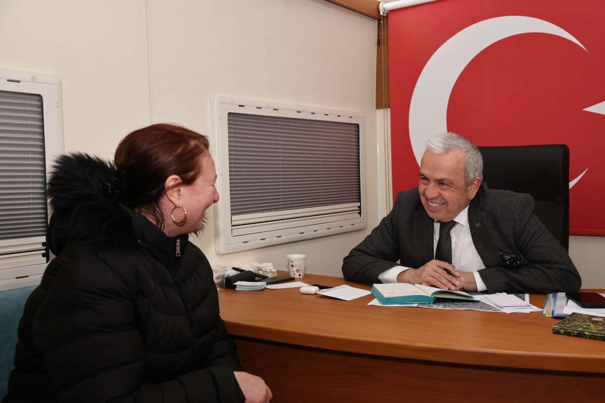 Nilüfer Belediyesi’nin Görükle Hizmet Binası önünde gerçekleştirilen mahalle buluşması öncesinde Nilüfer Belediye Başkanı Şadi Özdemir, Görükle Kadın Dayanışma Kalkındırma ve Kültür Derneği Başkanı Ayşe Özcan ve üyelerle bir araya geldi. Ardından Başkan Özdemir, talep ve önerilerini dile getirmek isteyen vatandaşlarla karavandaki makamında görüştü.