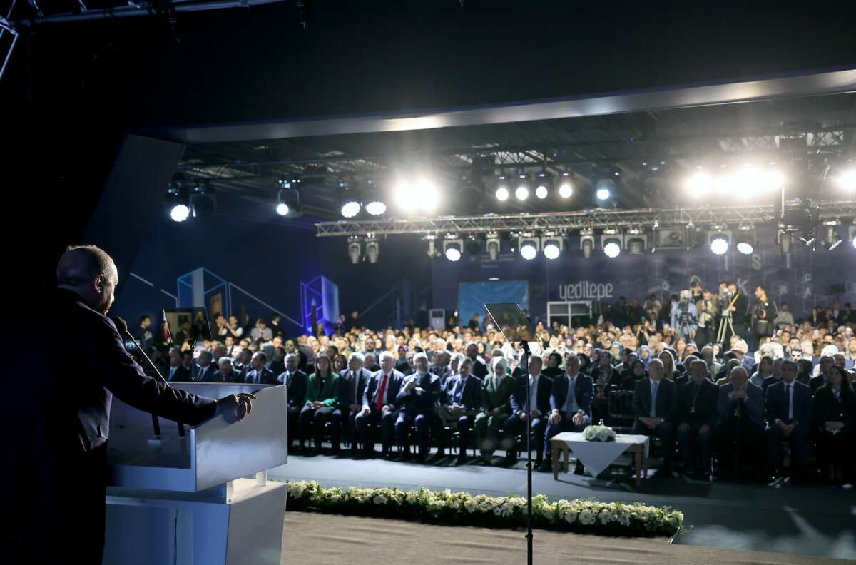 Tarihi ve kültürel değerlerin ihya edildiğine dikkat çeken Cumhurbaşkanı Erdoğan, “Dilimizin, kültürümüzün, mefkuremizin, geleneksel sanatlarımızın, kısacası medeniyet değerlerimizin oturduğu zemin bu faaliyetler eliyle günbegün tahkim ediliyor. Biz de on yıllardır geri plana itilen ve ihmal edilen bu çalışmalara, göreve geldiğimiz ilk günden itibaren güçlü destekler sağladık. Balkanlar’dan Afrika’ya, Asya’dan Avrupa’ya, Hicaz’dan Kafkasya’ya hayata geçirdiğimiz birçok proje ve programla köklerimize sıkı sıkıya sahip çıkmaya özen gösterdik. Gönül coğrafyamızdaki kardeşlerimizle aramızda yeni köprüler kurduk. Ecdadın emanetlerinin izini sürerek tarihi ve kültürel mirasımızı ihya ettik. Türkiye’yi her alanda gıptayla takip edilen bir konuma getirmeyi başardık. Bundan sonra da inşallah bu şuurla çalışmalarımızı sürdüreceğiz. Ecdattan devraldığımız her meziyeti, her güzelliği, her birikimi daha da güçlü bir şekilde geleceğe aktarmaya devam edeceğiz. Kendi değerlerimize sıkı sıkıya sahip çıkacak, onları yeniden yorumlayacak, gardırop modernlerinin yaptığı gibi kuru taklitçilikten uzak duracağız. Burada geçen yıl ebediyete uğurladığımız merhum Mehmet Doğan’ın şu sözlerini sizinle paylaşmak istiyorum: ‘Batıcılık, Batı taklitçiliği Türkiye’yi yıkıma götürmüştür. Milletimiz 21. yüzyıla yeni bir medeniyet vasatında girmelidir. Var olabilmenin, taklitten kurtulup ilim ve teknikte üretici olmanın, zihinleri çağ dışı, gerçek dışı baskılardan korumanın yegane yolu budur.’ Evet, kendisini bugün bir kez daha rahmetle andığımız Mehmet Doğan ağabeyin de dikkat çektiği üzere, taklit sadece aslını yüceltir. Hele hele kopyacılık, mukallidi çürütmekten başka hiçbir işe yaramaz. Türkiye, özellikle tek parti faşizmi döneminde buna maruz kalmış, Batıcı jakobenlerin elinde milletimizin kültür hazinesi ihmal edilmiş, tahkir edilmiş, daha vahimi, binlerce yıllık köklü miras reddedilmiştir. Ret politikaları ise merhum Tanpınar’ın ifadesiyle kültürel intihara varan, kültürel katliamla sonuçlanan felaketlere yol açmıştır. Gelenekle ve milletin değerleriyle kavgalı faşizan zihniyetin politikaları geride fikri, ilmi, akademik ve bilimsel açıdan büyük bir enkaz bırakmıştır. Oysa hepimiz biliyoruz ki geleneği olmayanın geleceği de olmaz. Kendi mazisine sırtını dönenin bugünü de yarını da karanlıktır. Biz işte bunun için her fırsatta kökü mazide olan bir atiyiz diyoruz. Eğitimden siyasete, kültür ve sanattan mimariye kadar her alanda maziden atiye uzanan sağlam köprüler kurmaya gayret ediyoruz. Millete, aziz milletimizin değerlerine, inancına, tarihine, kültürüne husumet besleyen tüm yaklaşımları elimizin tersiyle itiyoruz. Neoliberal kültürün dayattığı hayat tarzlarının dünyayı adeta istila ettiği bir dönemde asli kimliğimizi koruyarak istikbalimizi inşa etmeye çalışıyoruz. Her geçen gün kendimizi yeniden keşfediyor, medeniyetimizin kültür ve sanat mirasını yeni baştan gün ışığına çıkartıyor, bunları yeni nesillere aktarmanın samimi mücadelesini veriyoruz. Yeditepe Bienali’ni işte bu açıdan da fevkalade kıymetli bulduğumu bir kez daha ifade etmek istiyorum” şeklinde konuştu.