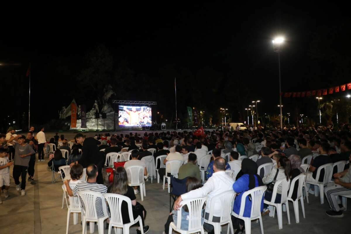 Pazar akşamı tüm yurtta olduğu gibi İnegöl’de de A Milli Basketbol Takımımızın final heyecanı yaşandı. Avrupa Şampiyonasında rakiplerini bir bir geride bırakarak finale yükselen 12 dev adamın Almanya karşısındaki zorlu sınavında, İnegöl tribünü de görevini en iyi şekilde yerine getirerek milli takıma tam destek verdi. İnegöl Belediyesi tarafından final maçı için heykel meydanında dev ekran kuruldu. Yüzlerce kişinin akın ettiği final müsabakası, heyecanla takip edildi.