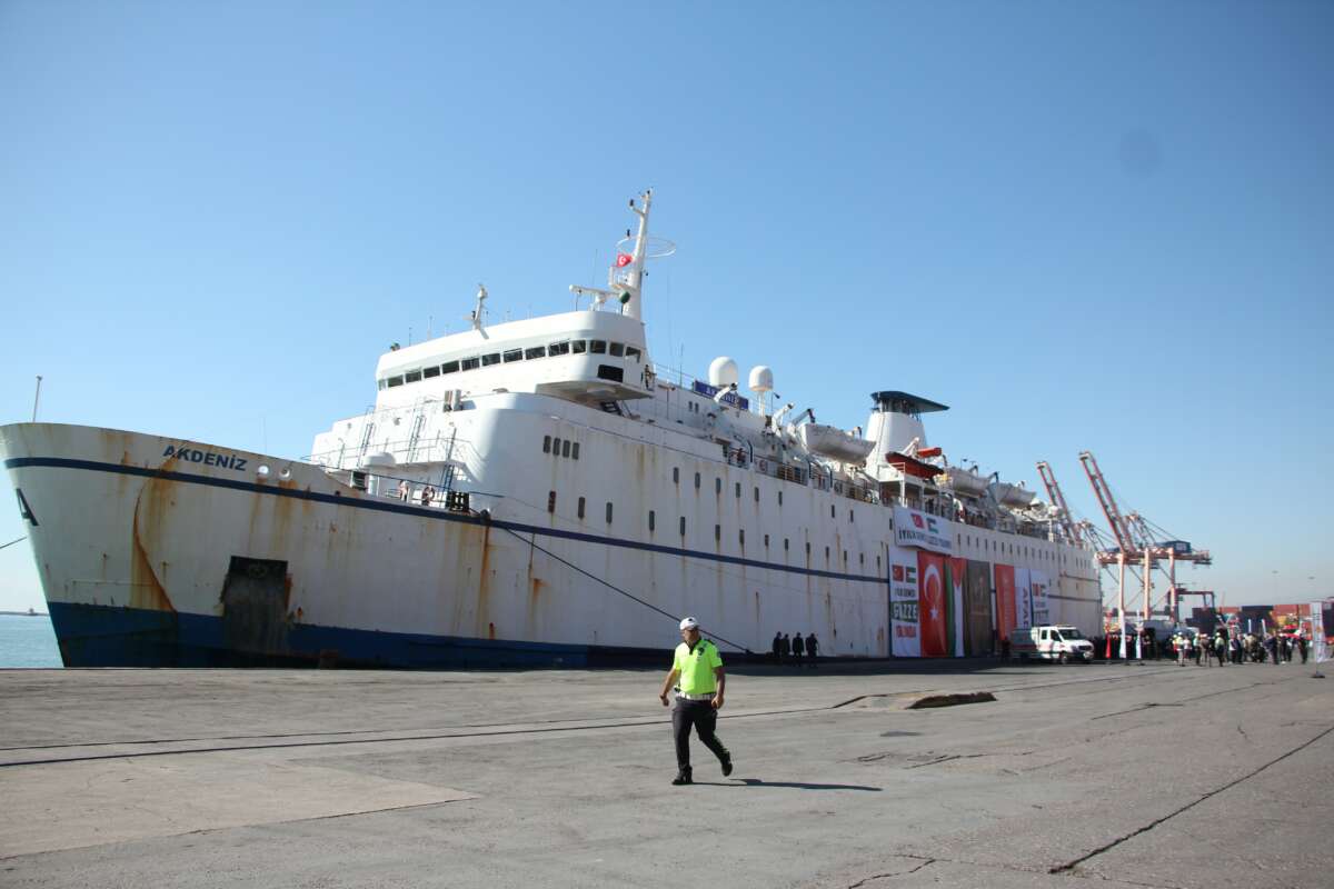 AFAD koordinasyonunda, 17 sivil toplum kuruluşunun desteğiyle hazırlanan insani yardım malzemelerini Gazze‘ye ulaştıracak olan 17. İyilik Gemisi, İçişleri Bakanı Ali Yerlikaya’nın katıldığı törenle Mersin Limanı’ndan uğurlandı. Bakan Yerlikaya’nın yanı sıra Bakan Yardımcısı Münir Karaloğlu, AFAD Başkanı Ali Hamza Pehlivan, Mersin Valisi Atilla Toros, AK Parti Mersin Milletvekili Ali kıratlı, sivil toplum kuruluşu temsilcileri ve çok sayıda davetlinin katıldığı törende dualar eşliğinde uğurlanan Akdeniz isimli gemide 50 tırlık yaklaşık 900 ton gıda ve hijyen malzemelerinin yer aldığı belirtildi. Yardım malzemelerinin Gazze‘ye ulaştıktan sonra AFAD ve Kızılay koordinasyonunda dağıtılacağı bildirildi.