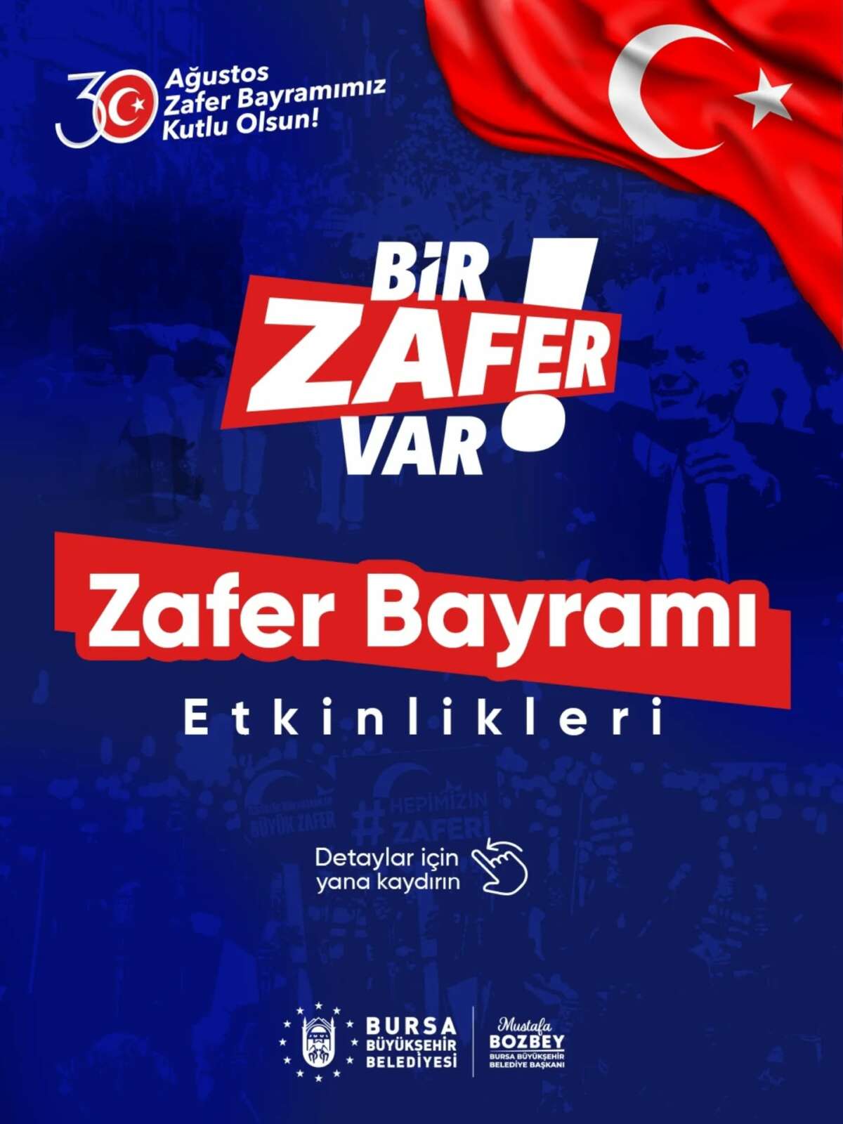 Tam 103 yıl önce Başkomutanımız Gazi Mustafa Kemal Atatürk’ün liderliğinde, kahraman ordumuz ve milletimizin inancıyla yazılan eşsiz destanı; bağımsızlık mücadelemizin ve özgürlüğümüzün simgesi, Cumhuriyetimizin kuruluşuna giden yolun mihenk taşı olan 30 Ağustos Zafer Bayramı, Büyükşehir Belediyesi koordinasyonunda hazırlanan programlarla, Bursa’da büyük bir coşkuyla kutlanacak.