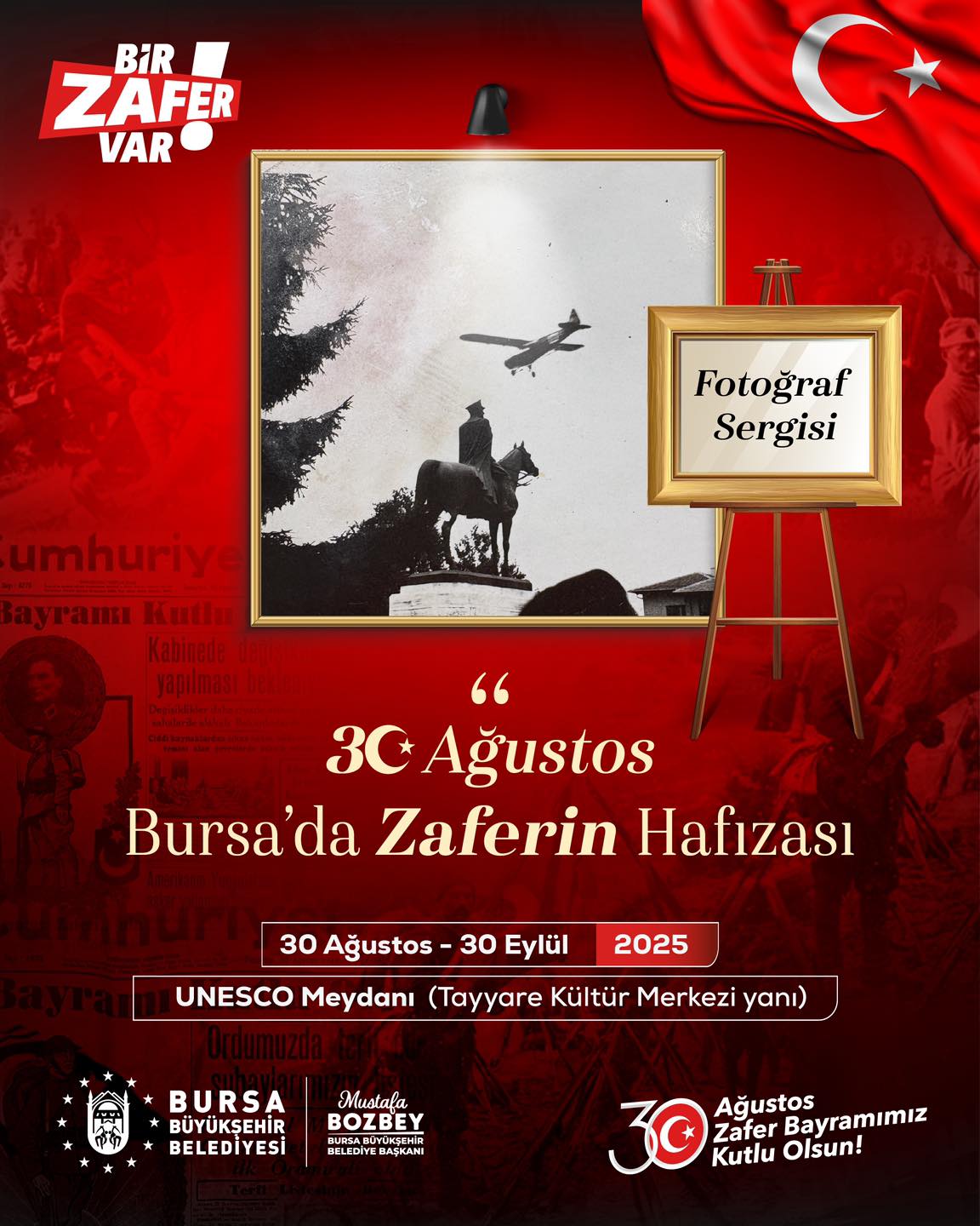 30 Ağustos Cumartesi günü ise saat 12.00’de UNESCO Meydanı’nda ’30 Ağustos Bursa’da Zaferin Hafızası’ segisi, saat 15.00’de Uludağ Üniversitesi Metro İstasyonu’nda ‘Bir Zafer Var’ fotoğraf sergisi izlenime sunulacak. ’30 Ağustos Zafer Yürüyüşü’ ise saat 20.00’de Bursa Büyükşehir Belediyesi Tarihi Belediye Binası önünden başlayarak Kültürpark Atatürk Stadyumu girişine (Millet Bahçesi) kadar sürecek. Nâzım Hikmet’in Kuvâyi Milliye Destanı’nın okunacağı Millet Bahçesi’nde, sevilen sanatçı Göksel’in sahne almasıyla coşku doruğa çıkacak. 31 Ağustos Pazar günü ise saat 20.30’da Kültürpark Atatürk Stadyumu girişinde ‘Bir Cumhuriyet Şarkısı’ film gösterimi yapılacak.