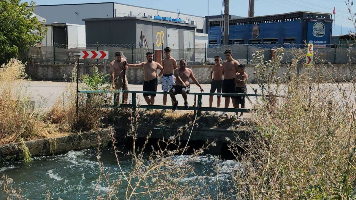 Mustafakemalpaşa’da termometreler 40 dereceyi gösterdi. Artan sıcaklık ve yüksek nemle birlikte hissedilen sıcaklığın daha da yükselmesi, vatandaşları serinlemenin alternatif yollarını aramaya itti. Denize ya da havuza ulaşma imkanı olmayan bazı gençler ise çareyi Fevzidede Mahallesi’ndeki tarımsal sulama kanalında buldu.