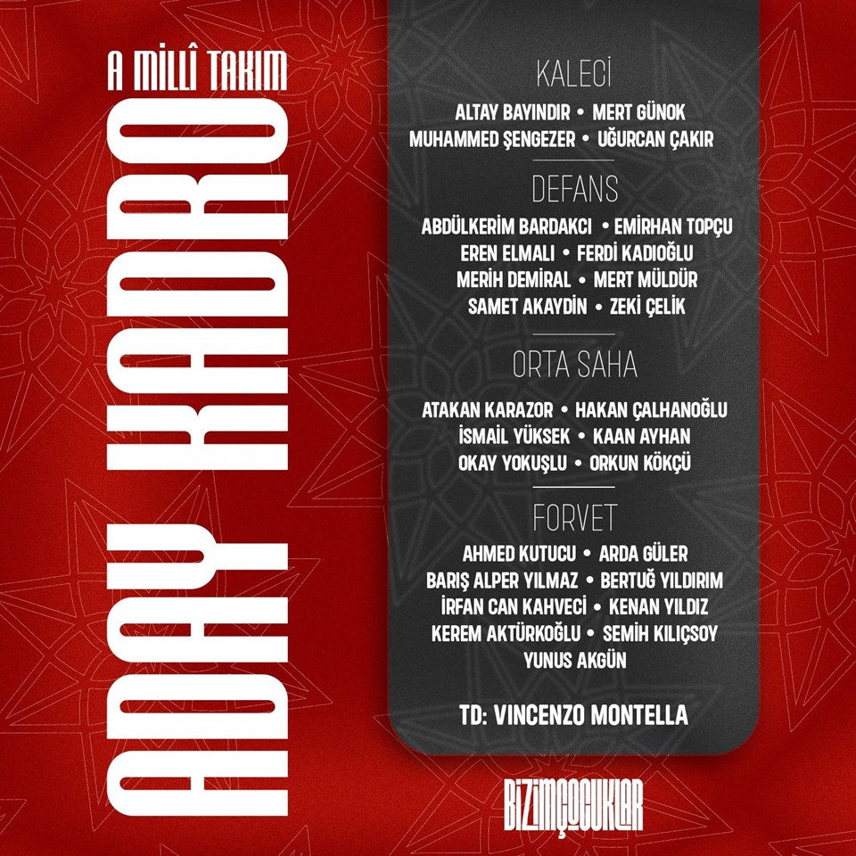 A Milli Takım’ın, UEFA Uluslar B Ligi’nde Karadağ ve İzlanda ile oynayacağı maçların aday kadrosu açıklandı.