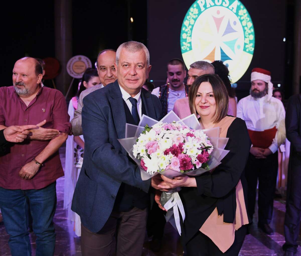 Osmangazi Belediye Başkan Yardımcısı Mutlu Esendemir ve Osmangazi Belediyespor Başkanı Fatih Karayılan, günün anısına Genel Sanat Yönetmeni Şair ve Oyuncu Akif Oktay ve Pursa Sanat ve Spor Kulübü Genel Koordinatörü Elif Aydemir Gülçaldı’ya gecenin anısına çiçek verdi.