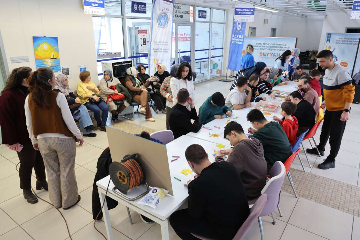 Bursa Büyükşehir Belediyesi tarafından Atatürk Kültür Merkezi Merinos Yerleşkesi’nde ‘Aynı Gökyüzü Altında Gülümsüyoruz’ atölyesi gerçekleştirildi. Sosyal Hizmetler Dairesi Başkanlığı Engelli Hizmetleri Şube Müdürlüğü’nün düzenlediği programda, Bursa Teknik Üniversitesi öğrencileriyle otizmli ve diğer özel gereksinimli bireyler tarafından mavi bir tuval üzerine kartondan hazırlanan kuş figürleri boyandı. Kapsayıcı ve etkileşim temelli yapısıyla dikkat çeken atölyede, katılımcılar ortak bir sanat eseri oluşturmanın mutluluğunu yaşadı.