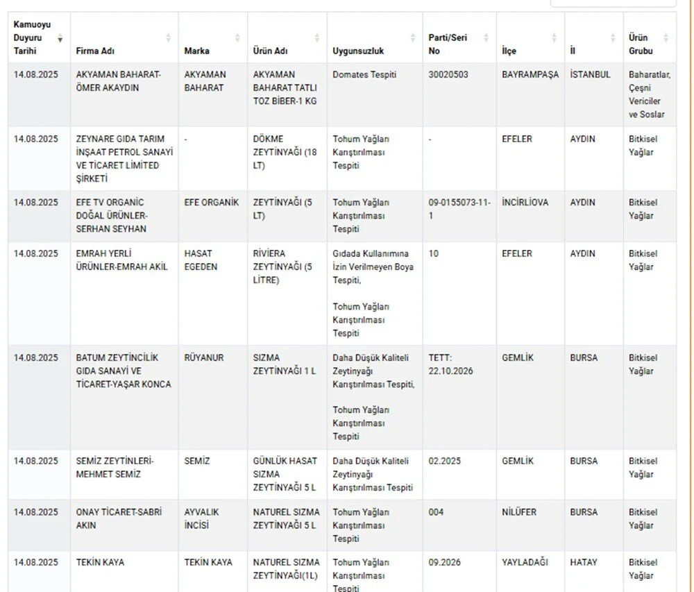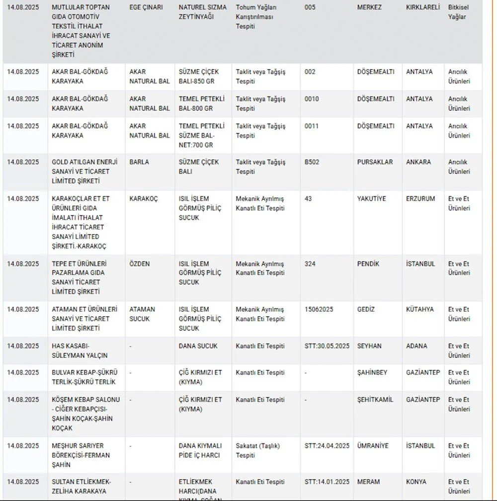 Bakanlık, vatandaşların sağlığını korumak amacıyla yaptığı denetimler sonucunda hileli ürünleri ve firmaları bir kez daha kamuoyuyla paylaştı.