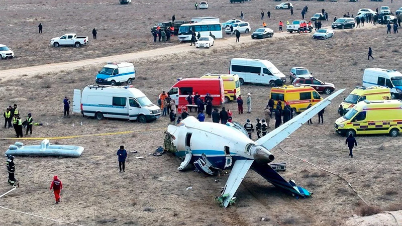 Uçak dün Kazakistan’ın Aktau şehrine yaklaşık 3 ilometre mesafede, Hazar Denizi’nin doğu kıyısında düştü.