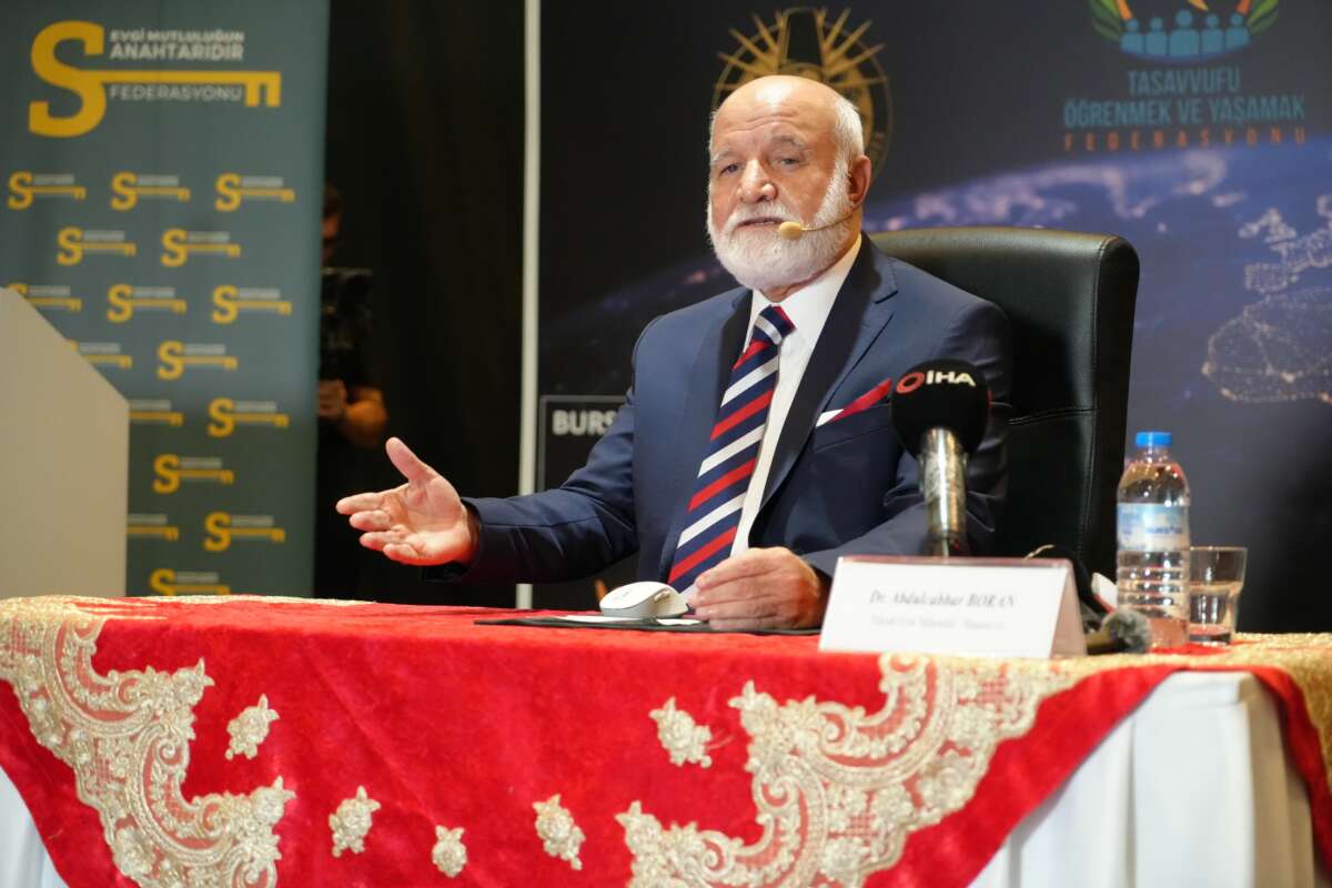 Yüzlerce kişinin salonu hıncahınç doldurduğu panel öncesi konuşan Dr. Abdulcabbar Boran, “Teknoloji ve kumar bağımlılığından kurtularak mutlu birey, mutlu aile ve mutlu toplum oluşturabiliriz. Dünyada yaşayan 8 milyar insanın hedefi, mutlu olmaktır. Ancak herkes mutluluğu farklı adreslerde aramaktadır. Adres, kutsal kitaplardır. İnsanlık tarihi boyunca nerede mutlu bir toplum gördüysek, nerede mutlu aile gördüysek, mutlak suretle bunun reçetesinin Allah’ta olduğunu görüyoruz. Günümüz insanının da hedefi mutlu olmaktır. Reçete çok basit, Kur’an-ı Kerim’deki Allah’a davet mesajıdır. Günümüzde Allah’a ulaşmayı dilemekle başlayan bu reçeteyi hayatımıza tatbik edersek, neden mutlu olmayalım. Mutlu aileleri oluşturmak ise hepimizin vazifesidir” dedi.