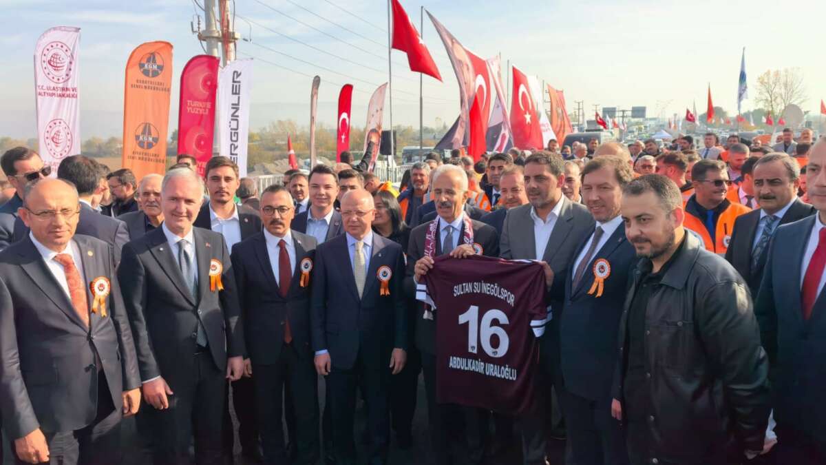Bakan Uraloğlu, “Siz üretmeye devam edin, biz yolunuzu açmaya devam edeceğiz diyoruz ve bunu da hayata geçiriyoruz. İnegöl giriş kavşağı işte bu sözün tam da nişanesidir. Konuşma metninde yoktu öğleden sonraki programa ayırdım ama burada da İnegöllü kardeşlerimle paylaşayım. Biz İnşallah önümüzdeki yıl Bursa‘mıza yüksek hızlı trenle seyahat edeceğiz. 2026 yılında biz Bursa‘ya yaptığımız gezilerden bir tanesini inşallah Ankara’dan İstanbul’dan hızlı trenle yapmış olacağız, projeyi yakından takip ediyoruz. Nazar etme ne olur, çalış senin de olur diyoruz ya onun için de bazen muhalif kardeşlerimizde onların haklı eleştirilerinin başımızın üzerinde yeri vardır. Ama bu anlamda onların da eleştirdiği bu konuları biz İnşallah hayata geçirmiş olacağız” diye konuştu.