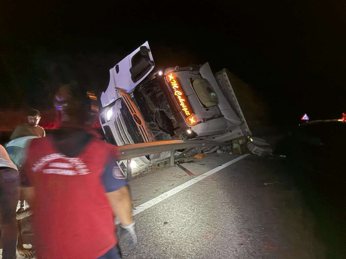 Edinilen bilgiye göre, 34 BOL 932 plakalı tır, sürücüsünün direksiyon hâkimiyetini kaybetmesi sonucu yoldan çıkarak savruldu. Kazada hem çekici bölümü hem de 35 BGH 075 plakalı dorse kısmı yola savruldu.