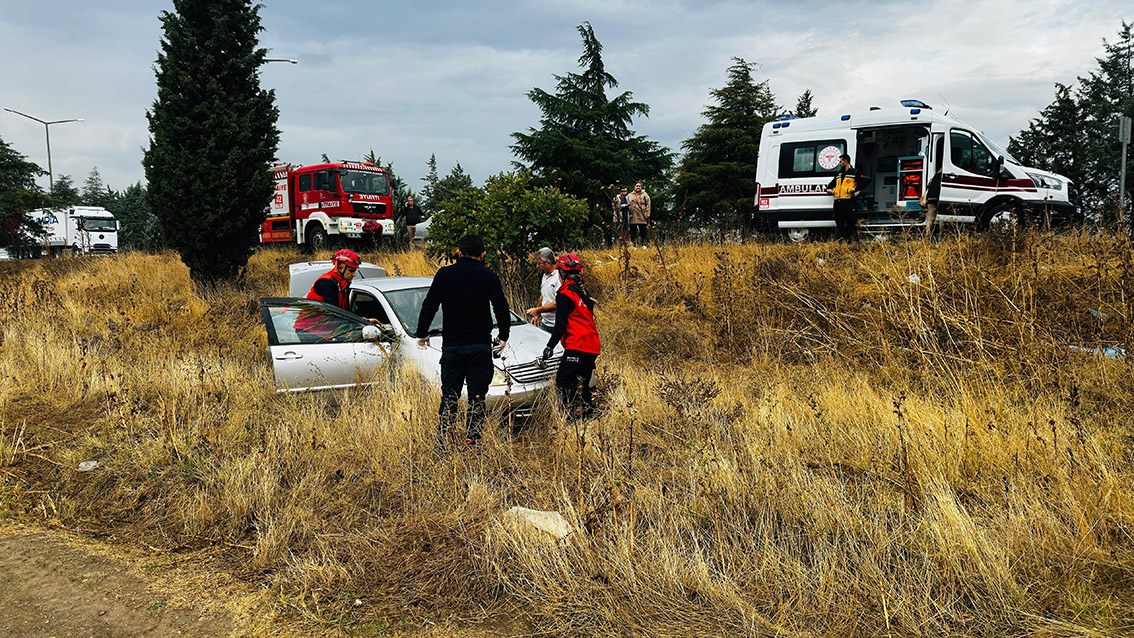 Balıkesir’de otomobil yağmurda kayarak, şarampole uçtu