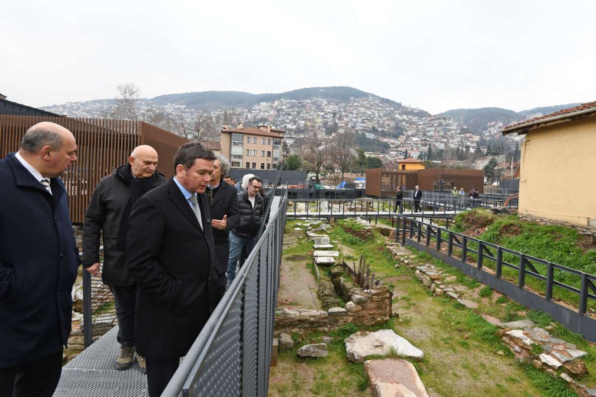 ‘Zamanın Kapısı’ olarak tanımlanan ve Bursa’nın tarihini daha derin bir perspektifle ele alan Arkeopark’ı ziyaret eden Osmangazi Belediye Başkanı Erkan Aydın, bu özel projenin yalnızca bir arkeoloji noktası değil; eğitim, kültür ve turizm açısından da önemli bir merkez olacağını söyledi. Hisar Arkeopark Projesi’nin çok kısa sürede önemli bir aşamaya geldiğini belirten Başkan Aydın, “Göreve geldiğimizde yüzde 5’ler seviyesinde olan proje, bugün yüzde 98 bandına ulaştı. İnşallah birkaç ay içerisinde yerli ve yabancı turistlerin ziyaretine açacağız” dedi.