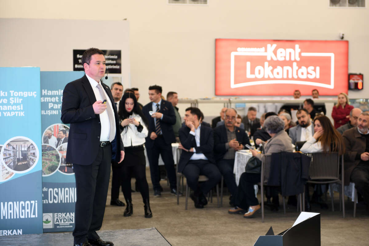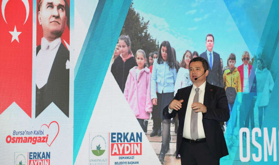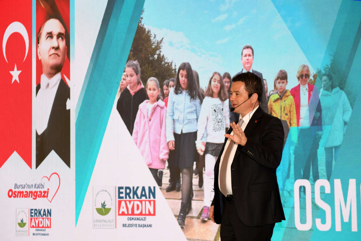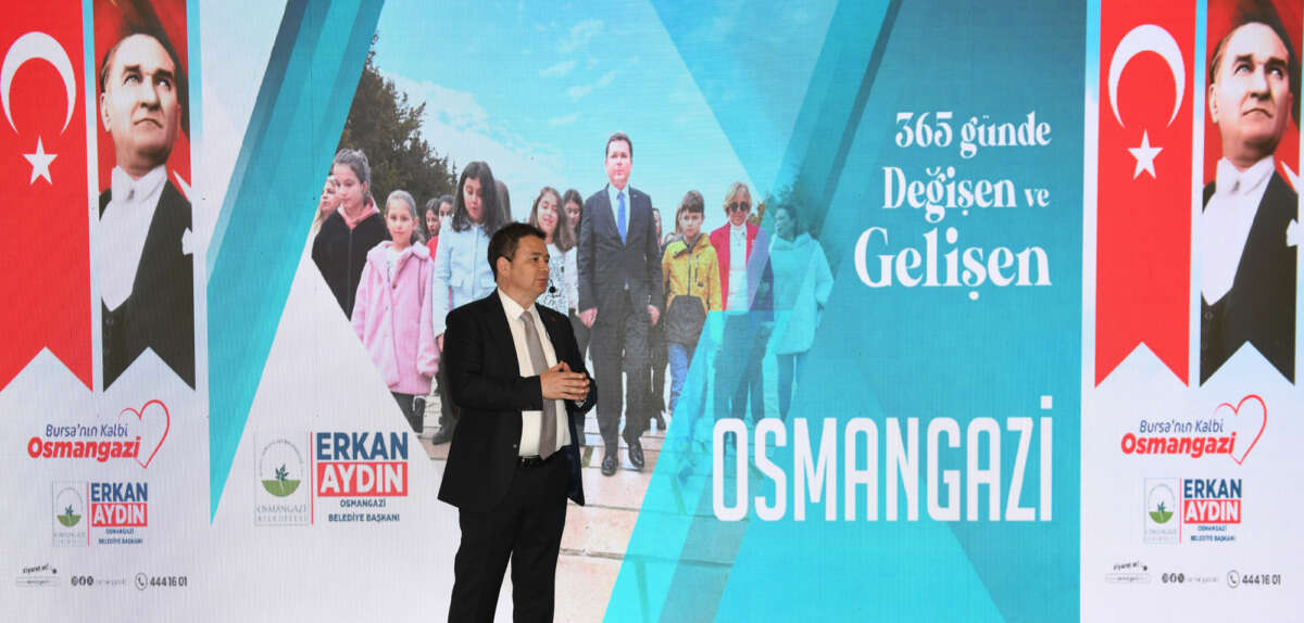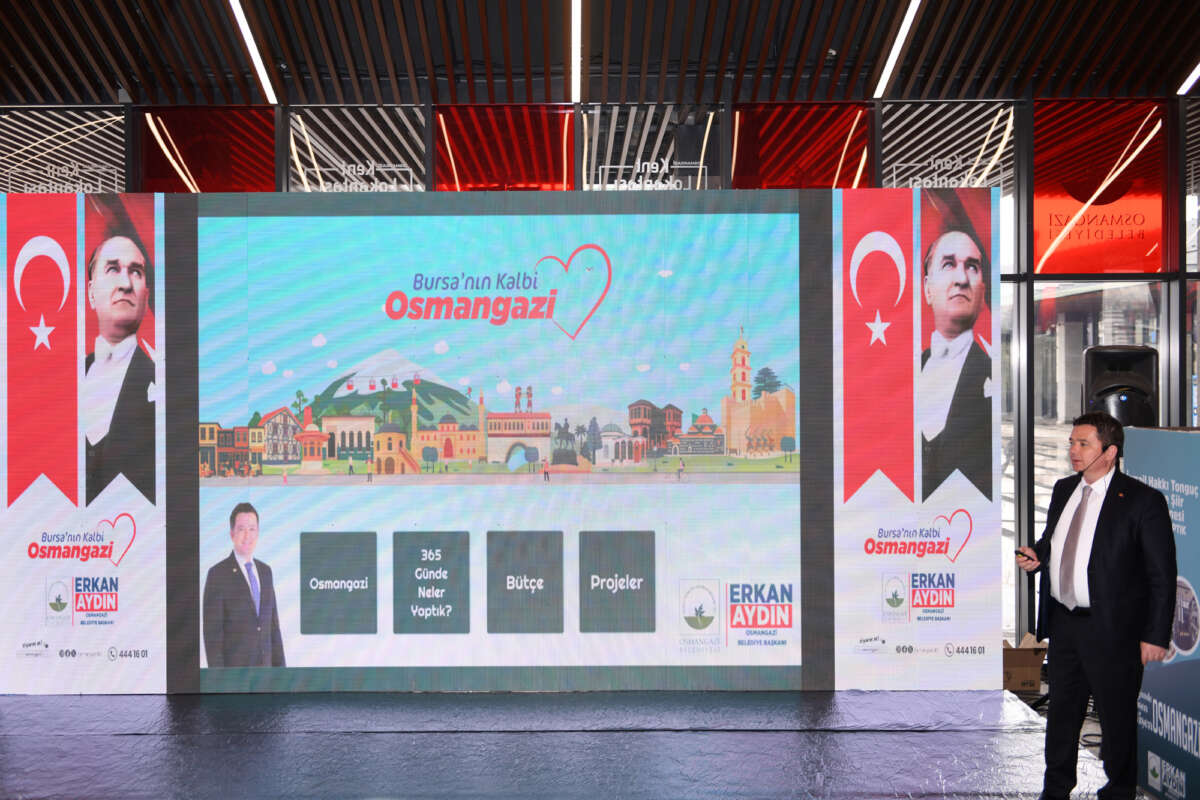 Osmangazi’de geçen bir yılın anlatıldığı kısa filmin ardından sunumuna başlayan Başkan Erkan Aydın, “Zamanın ne kadar hızlı geçtiğinin farkındayız. 8 yıllık milletvekilliği dönemim sanki 8 gün gibi geçti. Osmangazi Belediye Başkanlığı görevindeki bir yılım da sanki bir gün gibi geçti. Zamanın çok hızlı geçtiğinin bilinciyle, seçilir seçilmez çalışmalara başladık. Bursa’nın kalbi Osmangazi dedik ve bu sözümüze ve ilçemize yakışır hizmetler yaptık. Önümüzdeki 4 yılda da aynı hızla çalışmalarımıza devam edeceğiz” dedi.