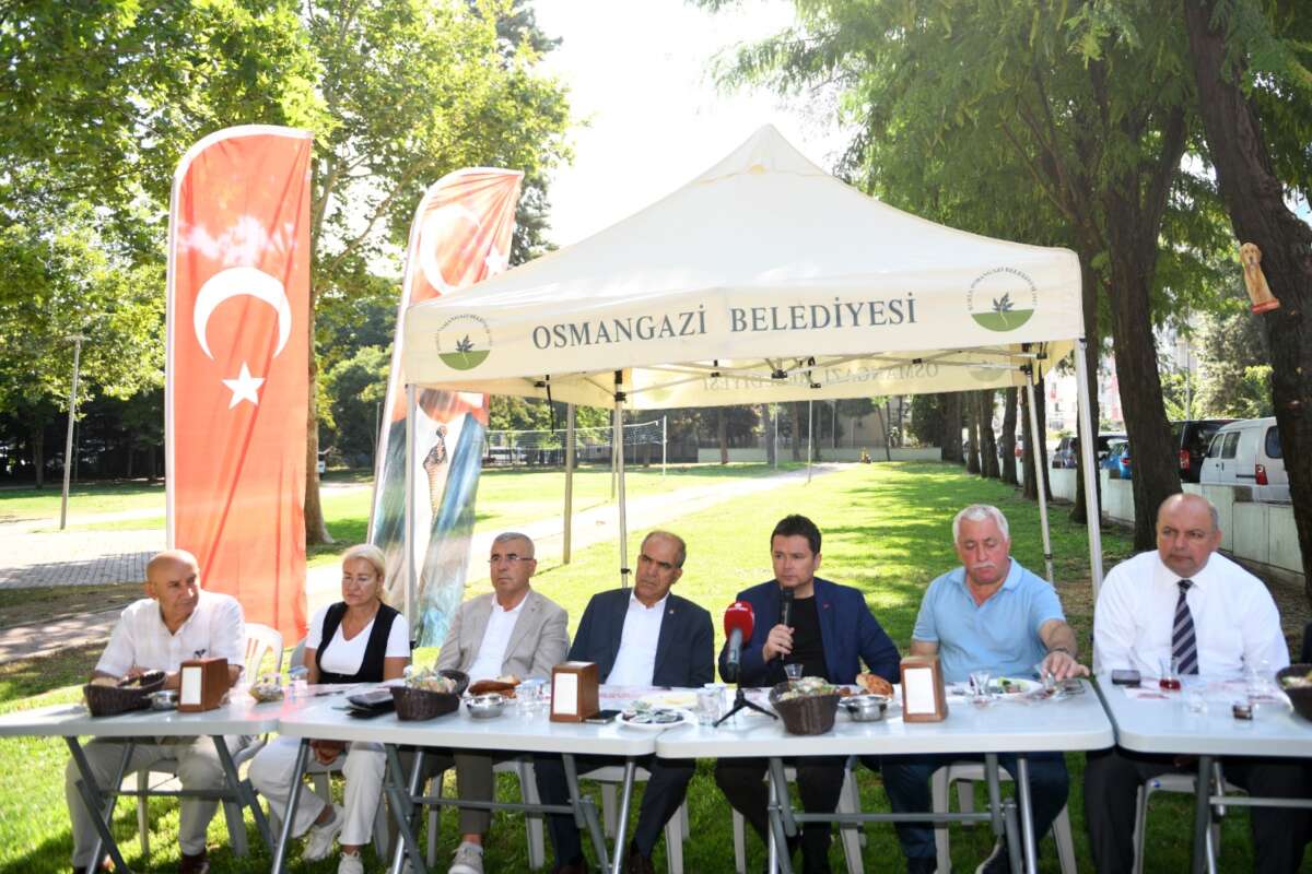 Osmangazi Belediye Başkanı Erkan Aydın’ın mahalle buluşmalarının bu haftaki adresi Çırpan ve Hocahasan mahalleleri oldu. Merinos Parkı’nda gerçekleşen buluşmaya, Çırpan ve Hocahasan mahallesi sakinlerinin yanı sıra Kırcaali, Doğanbey, İntizam, Kuruçeşme, Kiremitçi, Aktarhüssam ve Şahabettin Paşa mahallelerinin muhtarları ile o mahallelerde yaşayan vatandaşlar da katılım sağladı. Oldukça geniş bir katılım ile gerçekleşen mahalle buluşmasında, belediye başkan yardımcıları, meclis üyeleri ve birim müdürleri de yer aldı. CHP Osmangazi İlçe Başkanı Raşit Gürbüz ve Osmangazi Muhtarlar Derneği Başkanı Burhan Mandacı da mahalle buluşmasında Başkan Aydın’a eşlik etti.