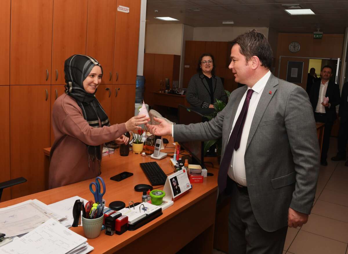 Osmangazi Belediye Başkanı Erkan Aydın, 8 Mart Dünya Kadınlar Günü etkinliklerini erken başlattı. Belediye’nin tüm birimlerini gezen Başkan Aydın, kadın personele masa çiçeği hediye ederek, kadınlar gününü kutladı. Tüm kadınların, 8 Mart Dünya Kadınlar Günü’nü kutladığını ifade eden Başkan Aydın, “Osmangazi’ye ve Osmangazililere en güzel hizmeti sunmak için emek veren kadın çalışma arkadaşlarımızla 8 Mart Dünya Kadınlar Günü sebebiyle bir araya geldik. Onların vermiş olduğu emek sayesinde Osmangazi’yi çok daha iyi yerlere taşımaya devam ediyoruz. Sadece 8 Mart değil, her günün kadınlar günü olması gerekiyor. Kadınların daha özgür, eşit ve hür olduğu, şiddete maruz kalmadığı bir dünya için 8 Mart Dünya Kadınlar Günü kutlu olsun” dedi.
