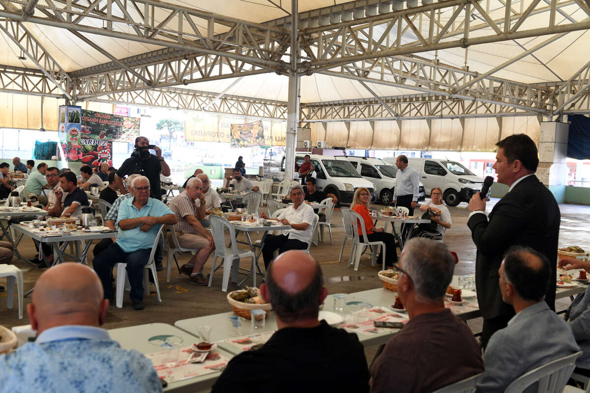 Hüdavendigar Kapalı Pazar Alanı’nda düzenlenen kahvaltı programında vatandaşlarla buluşan Başkan Aydın’a, CHP Osmangazi İlçe Başkanı Raşit Gürbüz, Osmangazi Belediye Başkan Yardımcıları, belediye meclis üyeleri, Bursa Seyyar Pazarcılar Esnaf Odası Başkanı Ahmet Refik Aksu, Osmangazi Muhtarlar Derneği Başkanı Burhan Mandacı, Dikkaldırım Mahalle Muhtarı Murat Erdoğan ile çevre mahallelerin muhtarları da eşlik etti.