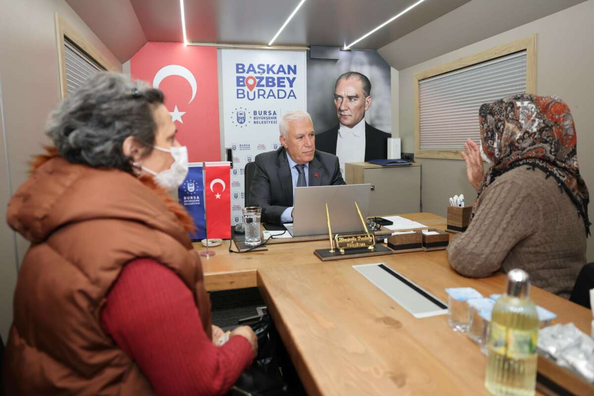 ‘Başkan Bozbey Burada’ projesi kapsamında ilçeleri tek tek gezmeye devam ettiklerini söyleyen Başkan Mustafa Bozbey, Türkiye’de olmayan bir projeyle her 15 günde bir Büyükşehir Belediyesi’ni ilçelere taşıdıklarını belirtti. Belediyenin sadece binalarda değil; sokaklarda, mahallelerde, ilçelerde vatandaşlarla buluşmak zorunda olduğunu ifade eden Başkan Mustafa Bozbey, “Bizim için en değerli makam, halkımızla buluştuğumuz alanlardır. Halkımızı tek tek dinleyerek taleplerini alıyoruz. Yarından itibaren de arkadaşlarımız bu talepleri çözmek için adım atmaya başlayacaklar. Yüz yüze görüşmeler yaparak Bursalıların derdini dert ediniyoruz. Daha önceki ziyaretimizde aldığımız talepleri değerlendirdik. Kestel’e, Büyükşehir Belediyesi’ni ilgilendiren konuların önemli kısmını çözdük” dedi.