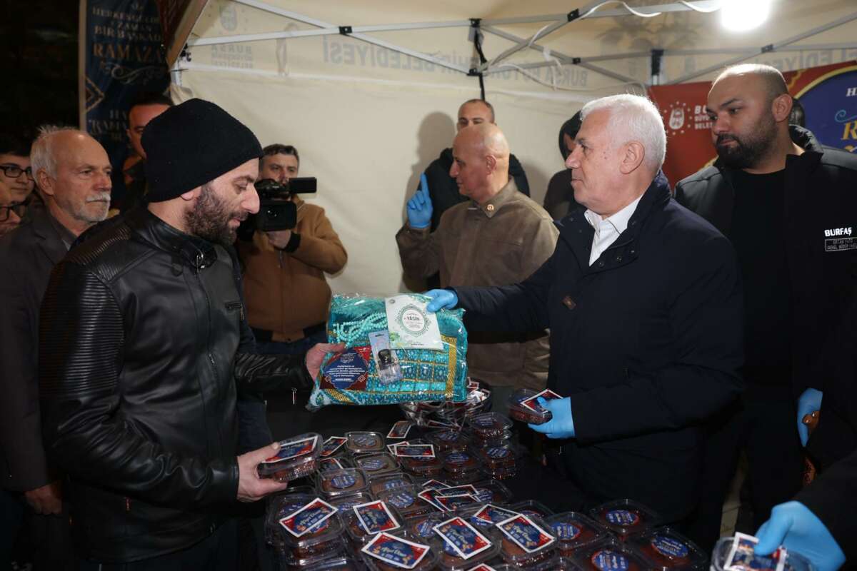 Bursa Büyükşehir Belediye Başkanı Mustafa Bozbey, aynı iftar sofrasını paylaşmaktan büyük mutluluk duyduklarını belirtti. Her gün 17 ilçede kurulan iftar sofralarında Bursa Büyükşehir Belediyesi’nin vatandaşın yanında olduğunu söyleyen Başkan Mustafa Bozbey, 14 ayrı noktada da iftariyelik dağıtmaya devam ettiklerini hatırlattı. Ramazan ayında dayanışmayı büyütmeye devam ettiklerini ifade eden Başkan Mustafa Bozbey, “Türkiye’nin en güzel şehirlerinden biri olan Bursa’da, Ramazan ayını manevi ve dayanışma yönünden çok güzel şekilde geçiriyoruz. Kültürpark’ta oluşturduğumuz Ramazan Sokağı’nda ise direkler arası denilen kültürü yaşatıyoruz. Bursa Büyükşehir Belediyesi olarak her zaman halkımızın yanındayız. Hayırlı Ramazanlar diliyorum” dedi.