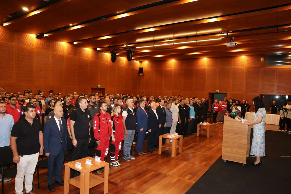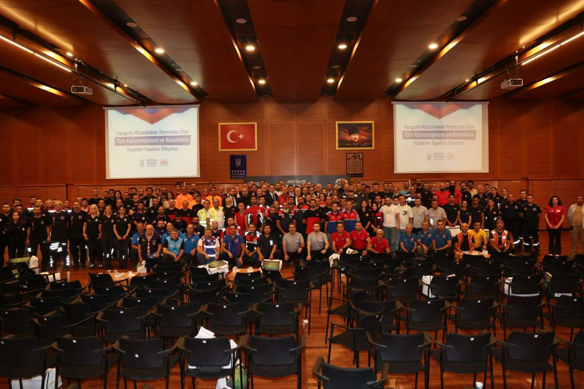 Atatürk Kültür Merkezi Merinos Yerleşkesi’ndeki buluşma, Gürsu’daki yangının söndürülmesi sonucu hayatını kaybeden Kazım Bayrak, Mehmet Şimşek ve Ahmet Demirel’in anısına yapılan saygı duruşuyla başladı. Bursa’nın uzun yıllardır böyle bir yangın felaketi yaşamadığını söyleyen Başkan Mustafa Bozbey, günlerce süren yangınların söndürülmesi için uzak veya yakın demeden birçok farklı şehirden ve kentin farklı bölgelerinden gelen insanların sorumluluk aldığını belirtti. Büyük fedakarlık gösteren insanları unutmanın mümkün olmadığını ifade eden Başkan Bozbey, “Bursa’da yaklaşık 10 bin futbol sahası büyüklüğünde ormanlık alanı kaybettik. Herhangi bir yangında sadece ağaçlar yanmıyor. Bir yaşam alanı da yanıyor. Doğanın dengesini koruyan milyonlarca canlı yanıyor. Onların bir tanesini dahi kurtarabilmek çok önemlidir. Cefakarca, fedakarca ve gözlerini kırpmadan yangınların söndürülmesine katkı sağlayan herkese tek tek teşekkür ediyorum. İyi ki varsınız. Çok önemli bir iş başardınız” dedi.