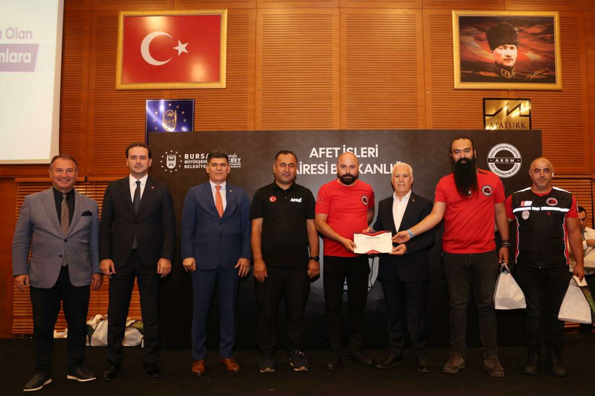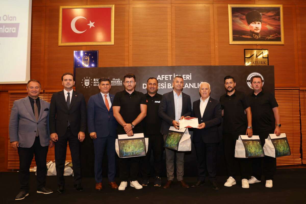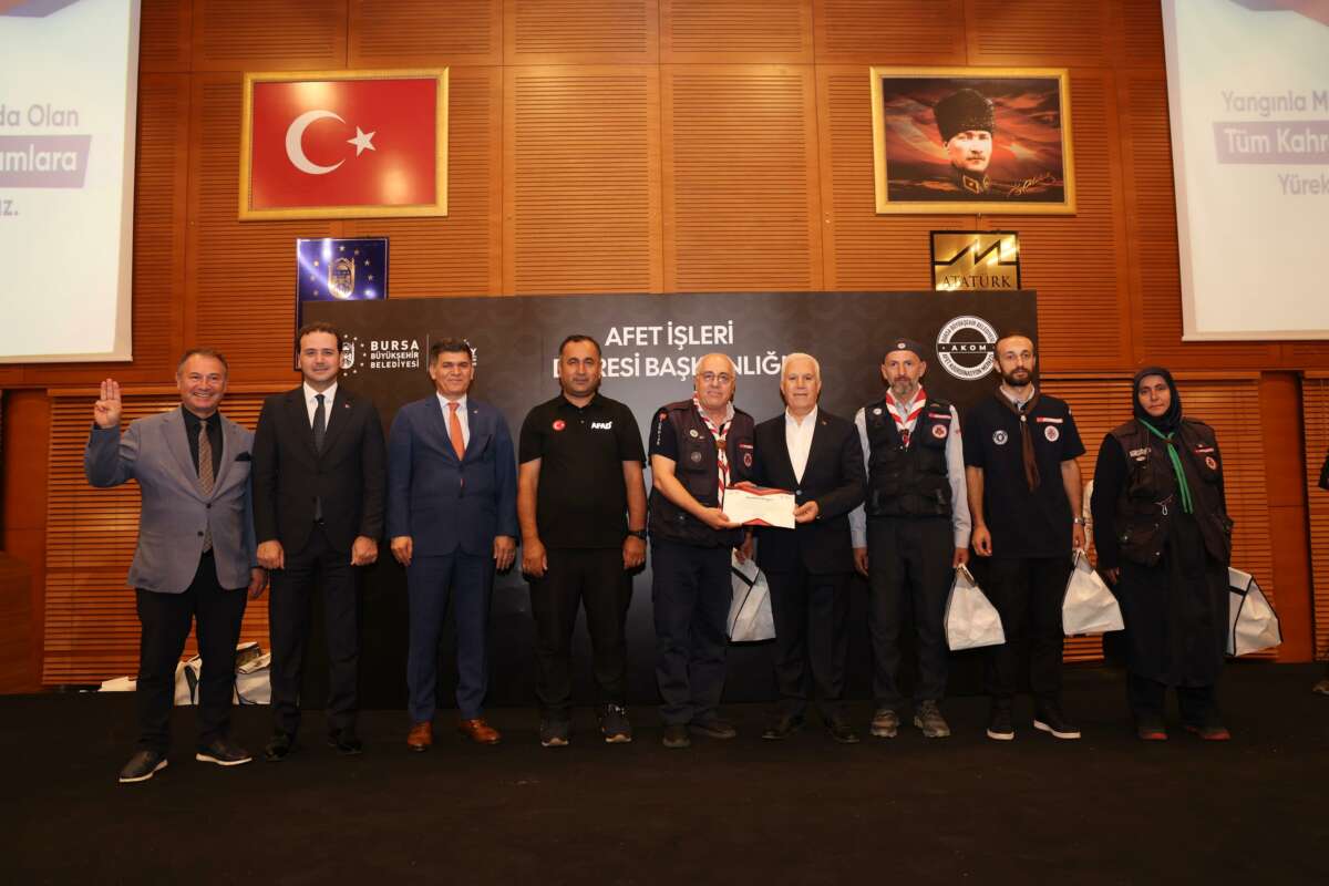 Bursa Büyükşehir Belediye Başkanı Mustafa Bozbey, geçtiğimiz haftalarda yaşanan orman yangınlarının söndürülmesi için gece gündüz demeden mücadele eden Büyükşehir Belediyesi İtfaiye Dairesi Başkanlığı ve AFAD başta olmak üzere kamu kurumlarının, sivil toplum kuruluşlarının, firmaların, derneklerin temsilcilerine, moto kuryerelere ve vatandaşlara teşekkür belgesi verdi.