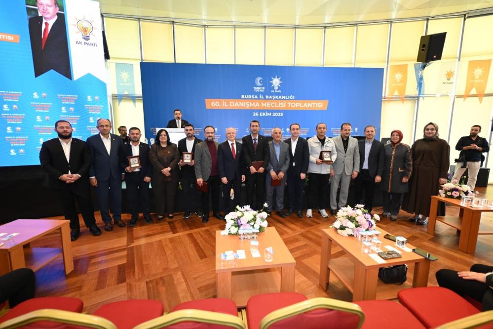 AK Parti Bursa İl Başkanlığı’nın 60. İl Danışma Meclisi toplantısı, AK Parti Bursa milletvekilleri Refik Özen, Osman Mesten, Ahmet Kılıç, Emine Yavuz Gözgeç, Emel Gözükara Durmaz ve Mustafa Yavuz’un yanı sıra AK Parti Bursaİl Yönetim Kurulu üyeleri, Bursa’daki 11 AK Partili belediye başkanı, 17 ilçe başkanı ve mahalle başkanlarının katılımıyla Merinos Atatürk Kongre ve Kültür Merkezi’nde büyük bir coşku içinde gerçekleştirildi. AK Parti Bursa İl Başkanı Davut Gürkan, mahalle başkanlarının partinin “sahadaki kalbi” olduğunu vurguladı. “Bu toplantı bir danışma meclisinden çok daha fazlasıdır; bir gönül buluşmasıdır.” diyen Gürkan, “Sizler bu davanın sahadaki vicdanı, emeği, yüreğisiniz. Cumhurbaşkanımız Sayın Recep Tayyip Erdoğan’ın da ifade ettiği gibi; mahalle başkanları bu partinin bel kemiğidir” ifadelerini kullandı.