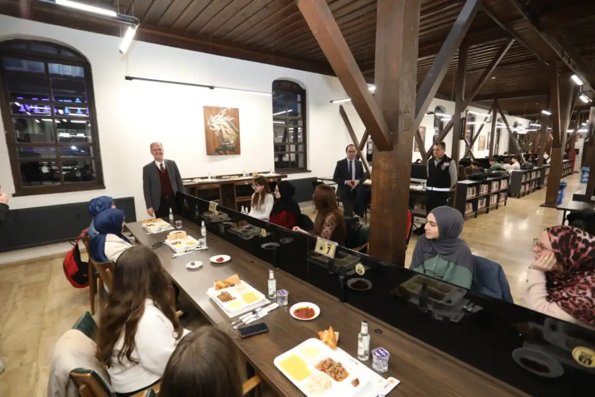 Öğrencilerin yoğun ilgi gösterdiği iftar programında, Başkan Taban yemeğin yanı sıra gençlerle sohbet edip güncel konular ve şehre dair istişareler yaptı. İftar sonrası öğrencilere yönelik bir selamlama konuşması yapan Başkan Taban, “Ramazan ayınızı tebrik ediyorum. İnşallah rabbim bayrama da eriştirsin. Bugün soframızda olduğunuz için de ben sizlere teşekkür ediyorum. Gayretli ve disiplinli çalışmalarınızdan dolayı da sizleri ayrıca tebrik ediyorum. Sizler İnegöl’ümüzün bugün ve bundan sonraki süreçte kıymetlilerisiniz. İnegöl’ümüzün çok güçlü ve güzel bir öğrenci ve genç potansiyeli var. Bunlar sizlersiniz” dedi.