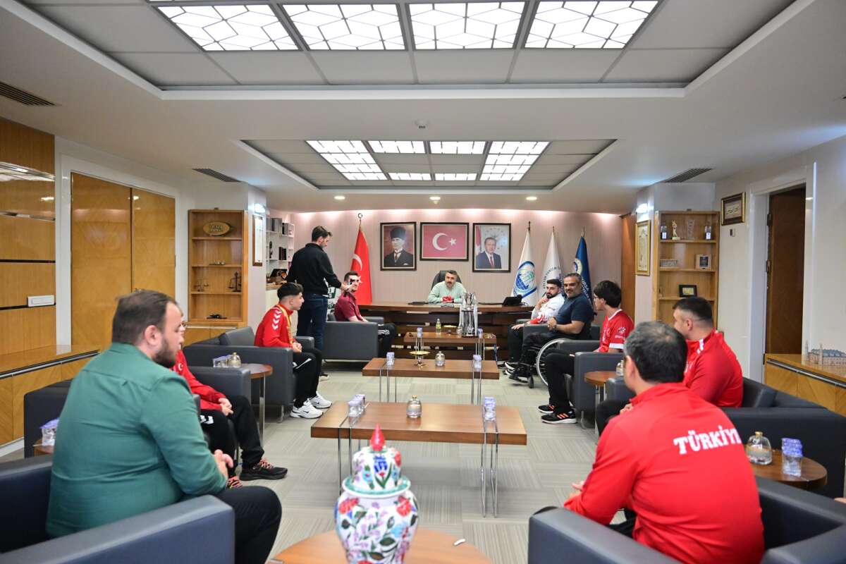 Katıldıkları uluslararası turnuvalarda ülkemizi ve Yıldırımı gururlandıran Toprak Aras, Yusuf İslam Kara, Batın Naniş ve Enes Gezer’i makamında ağırlayan Yıldırım Belediye Başkanı Oktay Yılmaz, başarılı sporcuları tebrik etti. Yıldırım’ın spor kenti kimliğini güçlendirmek için çalıştıklarını vurgulayan Başkan Oktay Yılmaz; “Gerek tesisleşme hamlemiz gerekse de spor kurslarımız ve eğitimlerimizle Yıldırım’ı adeta bir spor kentine çevirdik. Hamdolsun bu yatırımlarımız da meyvelerini veriyor. Sporcularımız katıldıkları ulusal ve uluslararası turnuvalarda ülkemizi ve bizleri gururlandıran önemli başarılara imza atıyorlar. Bu başarılar eminim ki, çocuklarımıza ve gençlerimize ilham olacak bir yol açacaktır. Ben tüm sporcularımızı tebrik ediyor ve başarılarının devamını diliyorum. Spora ve sporcuya olan desteğimiz bundan sonra da artarak devam edecek ifadelerini kullandı.