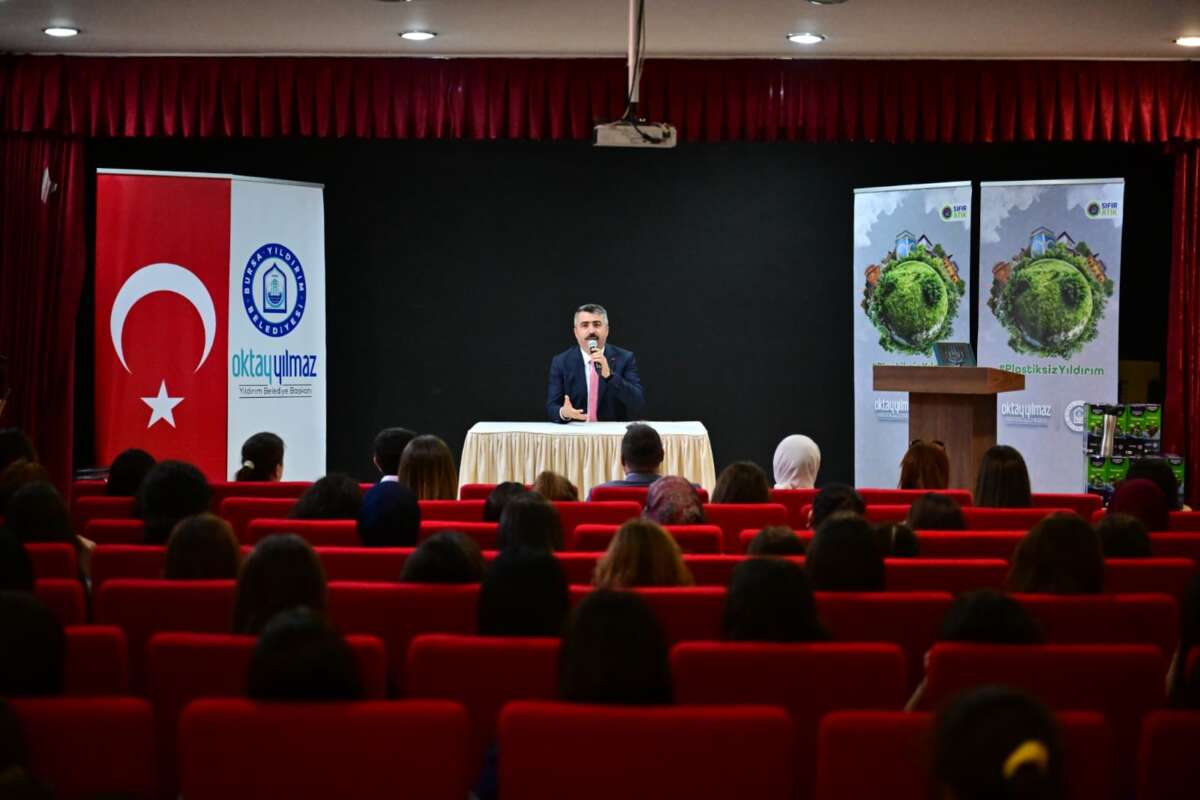 Yıldırım Belediyesi’nin, ‘Plastiksiz Yıldırım’ projesiyle ilgili gençlere bilgi veren Başkan Yılmaz, “Bugün burada sadece bir etkinlik düzenlemiyoruz. Aynı zamanda Yıldırım’ın gelecek vizyonunu birlikte inşa ediyoruz. Türkiye’nin ilk plastiksiz kütüphanesi olan Mümine Şeremet Uyumayan Kütüphanemizle başlattığımız bu yolculukta, yaklaşık 1 milyon plastik şişenin doğaya karışmasını önledik. Bu başarıyı bir üst seviyeye taşıdık ve “Plastiksiz Okul” modelini hayata geçirdik. Bugün İMKB Anadolu Lisesi’nde, Plastiksiz Yıldırım projemizin 5. okulundayız. Plastiksiz Okul projesi ile öğrencilerimize çelik mataralarımızı teslim ediyor ve su arıtma cihazımızı devreye alıyoruz. Bu yıl sonuna kadar 75 okulumuzda su arıtma cihazı kurmayı, öğrencilerimize yaklaşık 50 bin çelik matara dağıtmayı hedefliyoruz” diye konuştu.
