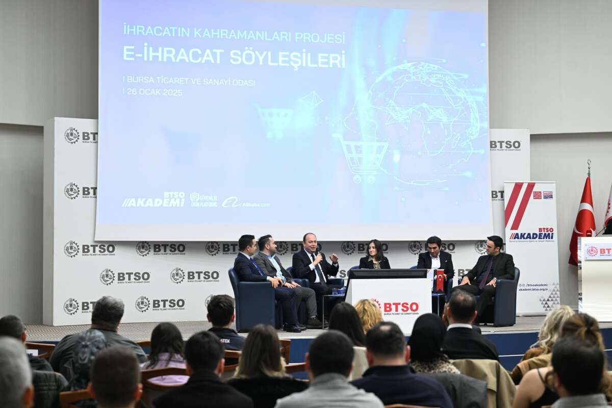 Bursa’yı e-ticaret, e-ihracat ve dijital ticaret alanında bölgesel değil küresel ölçekte söz sahibi merkezlerden biri haline getirmeyi hedeflediklerini söyleyen Hakan Batmaz, “Bu kapsamda Bursa merkezli bir pazaryeri oluşturma hedefiyle yürüttüğümüz konsorsiyum çalışmaları da kararlılıkla sürüyor. E-ticaret ve e-ihracatı, dış ticaretimizi büyütecek en stratejik araçlardan biri olarak görüyor; girişimcilerimizin özellikle sınır ötesi e-ticarette aktif rol almasını hedefliyoruz. Bugün burada BTSO Akademi, Güvenilir Ürün Platformu ve Alibaba.com iş birliğinde e-ihracatı konuşurken, bu başlığın firmalarımız için bir alternatifinin olmadığını net bir şekilde ifade etmemiz gerekiyor.’’ ifadelerini kullandı.