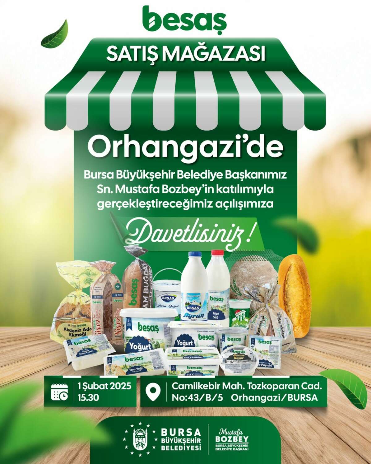 Açılış törenine Bursa Büyükşehir Belediye Başkanı Mustafa Bozbey de katılacak. Tören kapsamında BESAŞ’ın sağlıklı, güvenilir ve ekonomik ürünleri Orhangazi halkıyla buluşacak.
