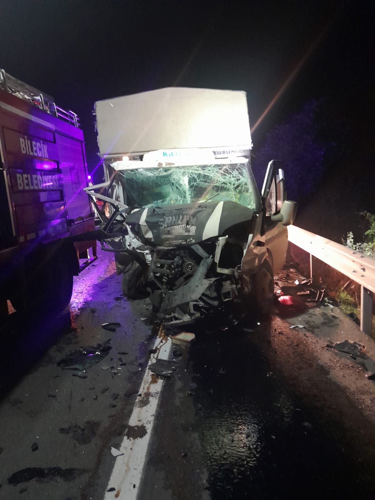 Kaza, Bilecik-Söğüt karayolu Yeniköy mevkisinde meydana geldi. Edinilen bilgilere göre, O.Y. idaresindeki 34 BIZ 742 plakalı hafif ticari araç, G.S.Ç. yönetimindeki 11 TF 323 plakalı kamyonetle çarpıştı. Kazayı gören vatandaşların 112 Acil Çağrı Merkezi’ne ihbarı üzerine olay yerine jandarma, sağlık ve itfaiye ekipleri sevk edildi. Sağlık ekipleri, hafif ticari araçta yolcu olarak bulunan Sümeyye O.’nun hayatını kaybettiğini tespit etti. Yaralanan sürücüler ise, yapılan ilk müdahalenin ardından ambulansla Bilecik Eğitim ve Araştırma Hastanesi’ne kaldırıldı. Sürücü O.Y.’nin hayati tehlikesinin bulunduğu öğrenildi.