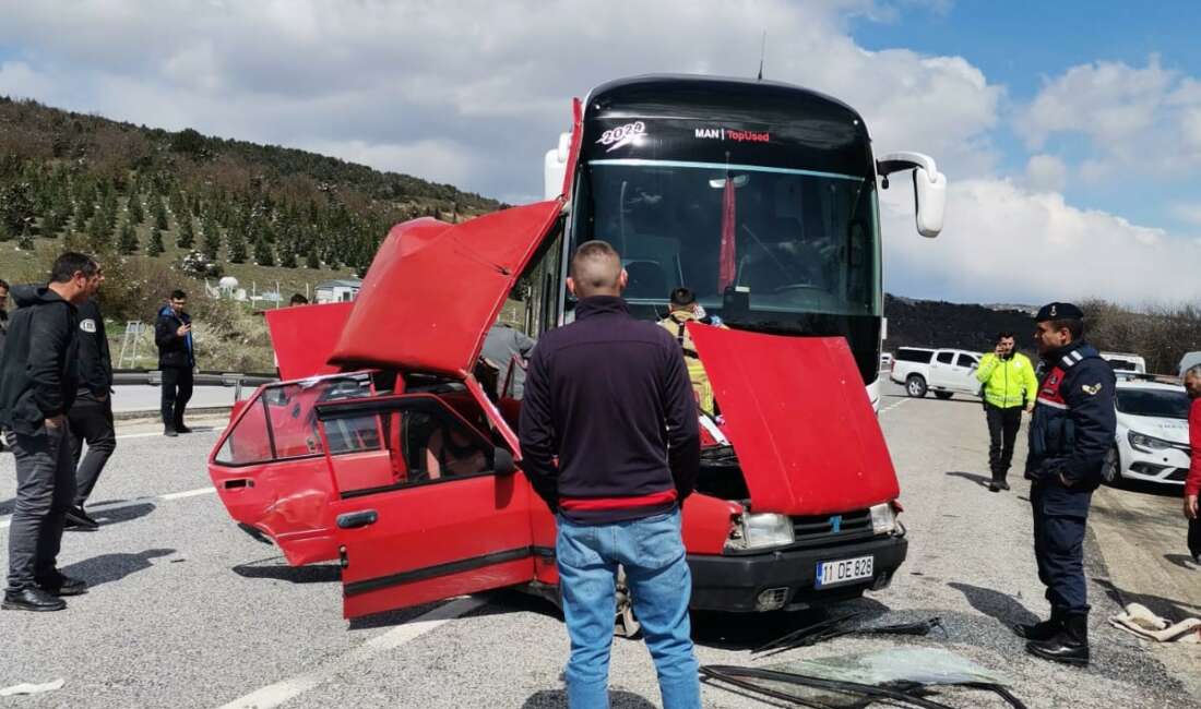 Olay, saat 14.30 sıralarında Bozüyük-Bursa karayolu Kızılcapınar mevkiinde meydana geldi. Edinilen bilgilere göre, sol şeritte ilerlerken direksiyonu aniden kıran Doğuş E. (27) idaresindeki 06 ETZ 396 plakalı yolcu otobüsü, Ahmet Kıvanç (50) idaresindeki 11 DE 828 plakalı otomobile çarptı. Kazada, Ahmet Kıvanç ve otomobilde yolcu olarak bulunan Necdet K. (57) ağır yaralandı.