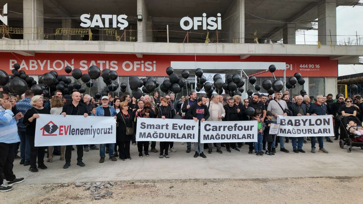 Bursa‘da geçtiğimiz aylarda girdiği mali kriz sonrası konkordato ilan eden Atış Yapı’ya tepki büyüyor. Konkordato sonrası yarım bırakılan projelerle birlikte konut hayali kabusa dönüşen 3 bin 500 aile mağdur oldu. Adalet arayışını sürdüren aileler Atış Yapı’nın Nilüfer ilçesindeki inşaatı durdurulan Babylon şantiyesi önünde toplandı. Basın açıklaması yapan aileler, daha sonra gökyüzüne 3 bin 500 adet siyah balon bıraktı.