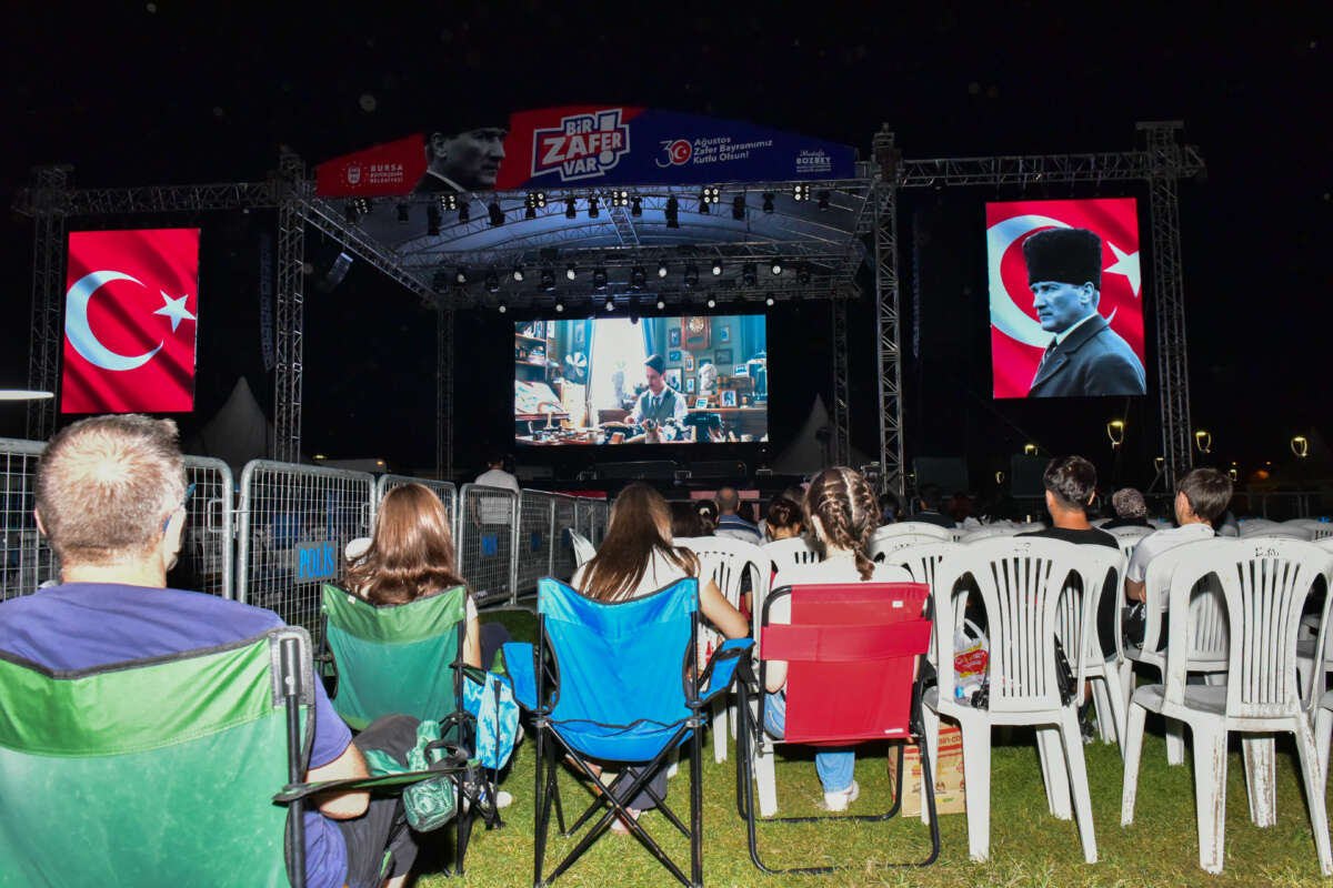 30 Ağustos Zaferi’nin 103. yıl dönümünde, Bursa’da kutlamalar coşkuyla sürdü. Bu kapsamda Kültürpark Atatürk Stadyumu (Millet Bahçesi) girişinde düzenlenen “Bir Cumhuriyet Şarkısı” film gösterimi, Bursalılara açık havada zafer gururu yaşattı. 1930’lu yıllarda genç bir Cumhuriyet olan Türkiye’nin girdiği modernleşme sürecini konu edinen film, vatandaşlardan tam not aldı.