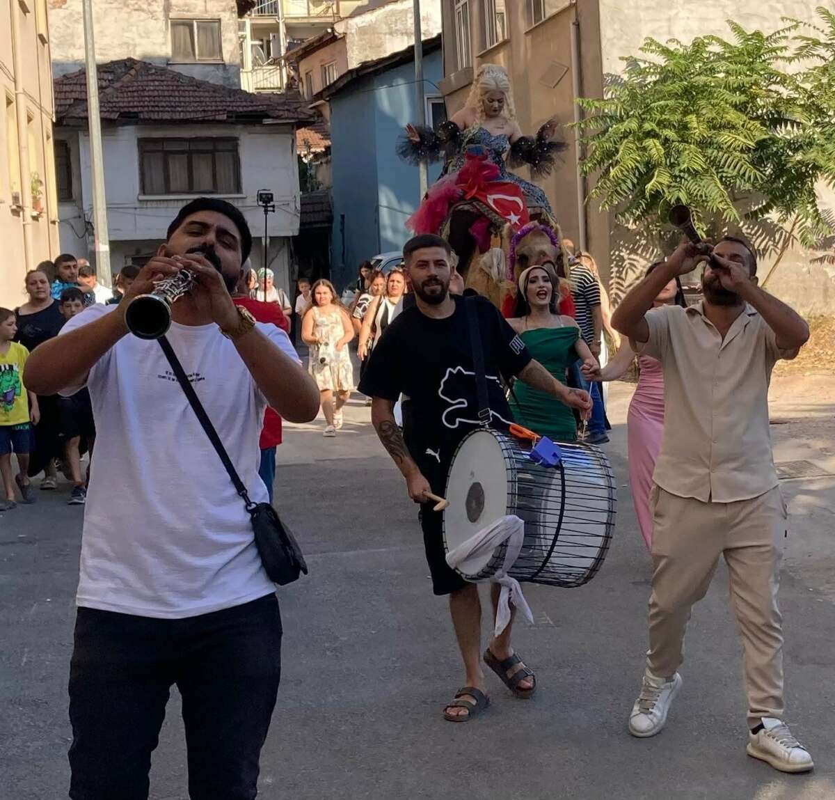 Bursa’da Osmangazi ilçesi Demirtaşpaşa Mahallesi’nde gerçekleşen düğünde, sünnet çocuğu Yamaç Güç, davul zurna ile birlikte Midilli cinsi atla mahalleyi gezdirilirken annesi de ilginç bir şekilde oğluna eşlik etti. Anne Birsen Güç ise adeta düğün arabası gibi süslenen deveyle oğlunun arkasından mahalle turuna eşlik etti. O anlara şahit olan vatandaşlar gözlerine inanamadı