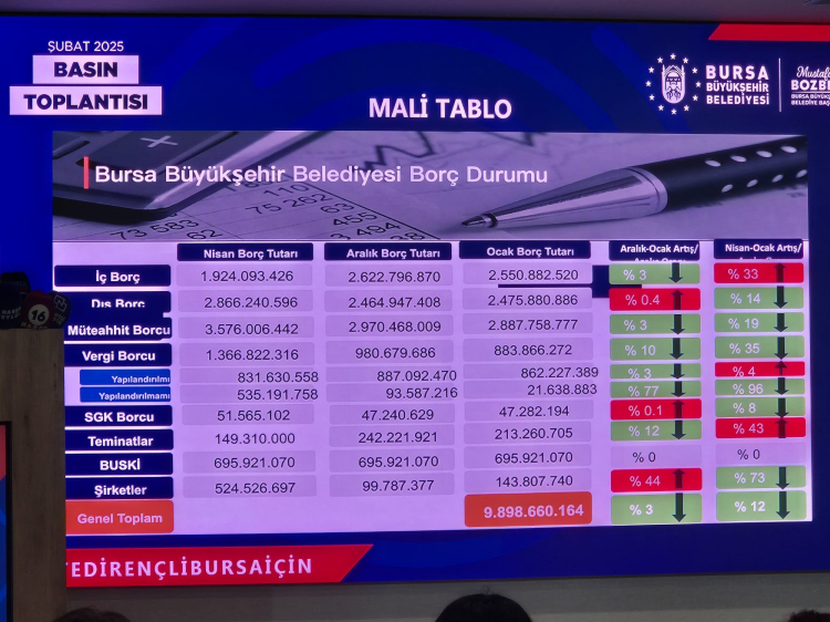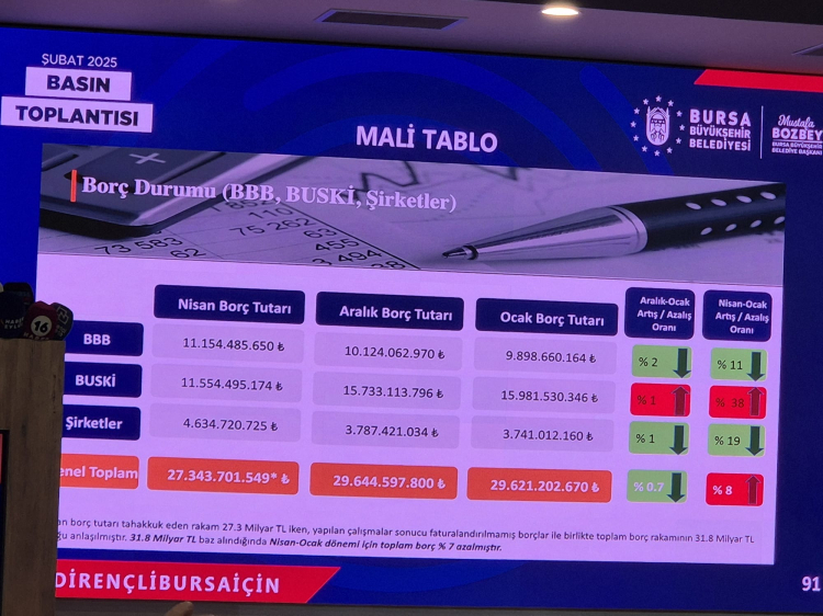 Nisan ayına göre, %11 civarında borcumuzu azaltmış durumdayız. BUSKİ‘nin borcu maalesef %38 civarında artmış durumda. Şirketlerin borçlarında ise %18 civarında bir düşüş var.