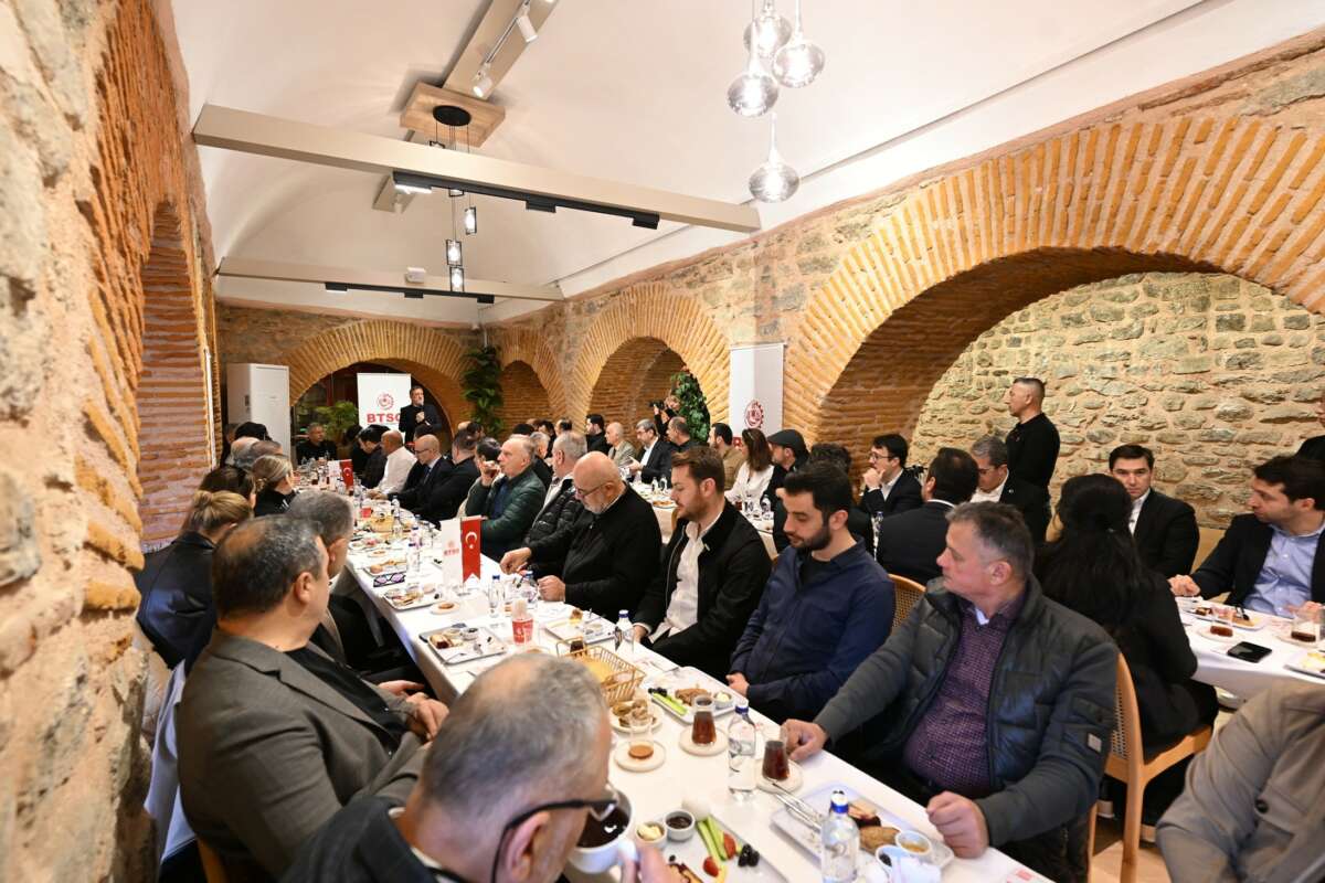 BTSO Yönetim Kurulu Başkanı İbrahim Burkay, yönetim kurulu üyeleri ve meclis divan üyeleri, Bursa Tarihi Çarşı ve Hanlar Birliği (BTÇH) Başkanı İsa Altıkardeş, çarşı başkanları ve bölgedeki BTSO üyeleri ile bir araya geldi. Koza Han’da gerçekleştirilen programda konuşan İbrahim Burkay, Tarihi Çarşı ve Hanlar Bölgesi’nin Bursa’nın kültürel kimliğini taşıyan güçlü bir okul niteliğinde olduğunu ifade ederek, “Çarşı bizim doğduğumuz, büyüdüğümüz ve mesleki meşguliyetimizin şekillendiği bölge. Bugün bu bölgeden yetişen birçok dostumuz hem Bursa’ya hem ülkemize büyük değer katmaya devam ediyor” dedi.