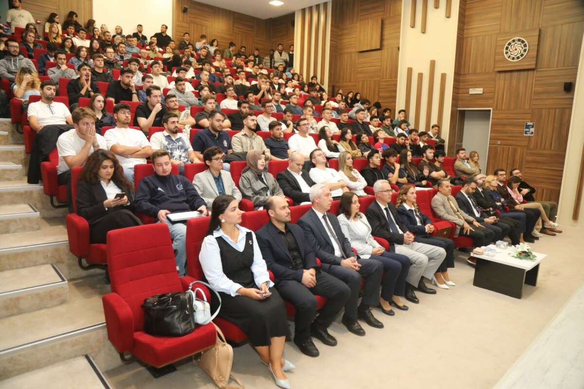 Mimar Sinan Yerleşkesi Yeşil Salon’da, “Dünya ve Türk Denizciliğindeki Son Gelişmeler & İş Hayatına Dair Notlar” başlıklı dersini anlatan Ulaştırma ve Altyapı Bakan Yardımcısı Durmuş Ünüvar, denizcilik sektöründeki küresel gelişmeler, Türk denizciliğinin gücü, Türk boğazlarının stratejik önemi gibi konuları aktardı. Denizcilik sektörünün devletler için öneminden bahseden Bakan Yardımcısı Ünüvar, bu sektörde güçlü olan ülkelerin, bağımsızlık ve prestij anlamında da çok daha güçlü olduğunu vurguladı. Denizcilik sektöründeki küresel gelişmeler, riskler ve fırsatlardan da bahseden Ünüvar, günümüzde artık yapay zeka ve otonom gemilerin konuşulduğunu, teknoloji ile beraber siber güvenlik kısmının ise ön plana çıktığını vurguladı.