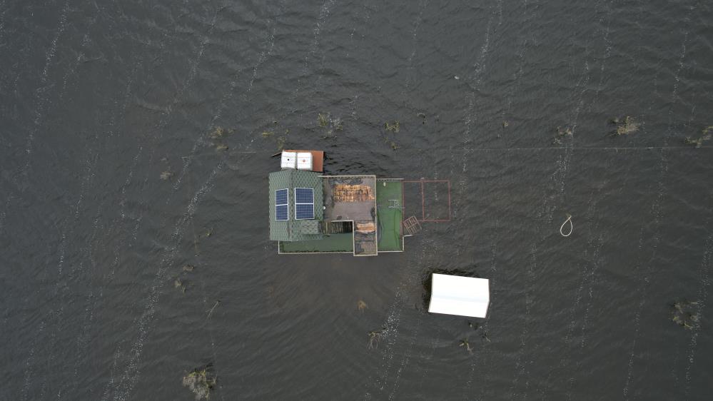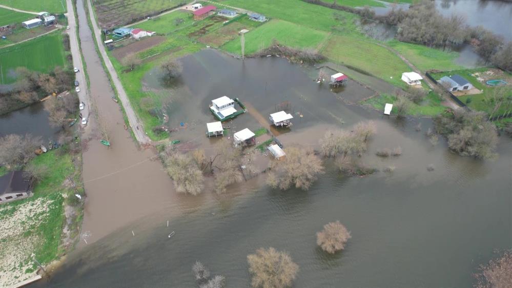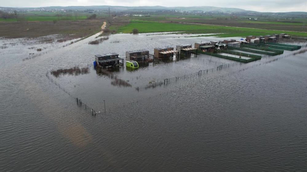 Bölgede oluşan taşkın dron ile havadan görüntülenirken, ortaya çıkan manzara gölün ne denli geniş bir alana yayıldığını gözler önüne serdi.