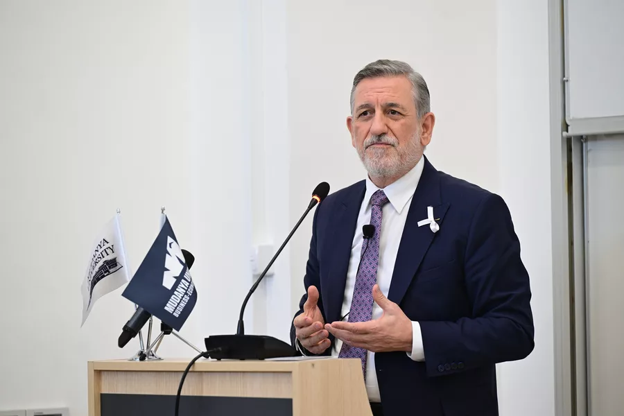 Mudanya Üniversitesi Konferans Salonu‘nda düzenlenen etkinliğe Mudanya Üniversitesi Mütevelli Heyeti Başkanı Gıyasettin Bingöl, Mudanya Üniversitesi Rektörü Prof. Dr. Emin Karip, Mudanya Üniversitesi Danışma Kurulu Başkanı Prof. Dr. Ahmet Saim Kılavuz, akademisyenler, BTSO Yönetim Kurulu ve Meclis Üyeleri ile öğrenciler katıldı. Etkinliğin açılış konuşmasını yapan Mudanya Üniversitesi Rektörü Prof. Dr. Emin Karip, Bursa’nın sektörlerinde öne çıkan seçkin isimleri üniversitelerinde ağırlamaktan memnuniyet duyduklarını belirterek, İbrahim Burkay’a katılımı için teşekkür etti. Öğrencileri eğitim aldıkları bölümlere ilişkin sektörlere en iyi şekilde hazırlamak amacıyla teorik derslerin yanı sıra uygulamalı çalışmalara da büyük önem verdiklerini ifade eden Karip, “Bu kapsamda Bursa iş dünyası ile güçlü iş birlikleri yürütüyoruz. En kıymetli paydaşlarımızdan biri de Bursa Ticaret ve Sanayi Odası. İmzaladığımız protokollerle her zaman bizlere önemli katkılar sağlıyorlar. Etkinliğin düzenlenmesinde emeği geçen herkese teşekkür ediyorum.” dedi.