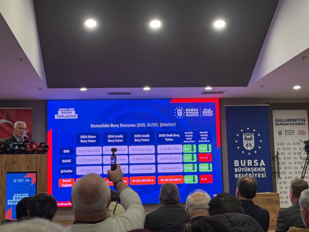 Büyükşehir Belediyesi’nin mali durumu hakkında da bilgi veren Başkan Mustafa Bozbey, “Büyükşehir Belediyesi’nin son ay içerisinde yüzde 2 düşüş sağlandı. Nisan 2024’ten bu yana borçlarda yüzde 32 düşüş sağlandı. Şirketlerde aynı şekilde son ayda binde 1 civarında düşüş var. Geldiğimiz günden bugüne de binde 3 civarında düşüş sağlandı. BUSKİ’ye geldiğimizde duru vahim. Son bir ayda binde 1, ama geldiğimiz günle bugün arasında yüzde 113 artış var. BUSKİ’nin yüzde 85 kredisi dövizdir. BUSKİ’nin 25 milyar 200 milyon civarında borcu var. Bunu elbette ödeyeceğiz. Ama Bursa olarak hep beraber ödeyeceğiz. Maalesef öyle” dedi.