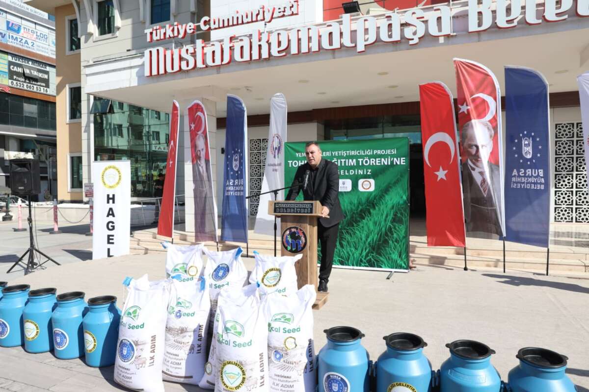 Dağıtım töreninde konuşan Büyükşehir Belediyesi Başkanvekili Mehmet Aydın Saldız, damla sulama borusundan sıvı gübreye kadar birçok alanda üreticiye destek verdiklerini söyledi. Bursa Büyükşehir Belediye Başkanı Mustafa Bozbey’in kırsal kalkınmaya ve üretici gelirlerinin artırılmasına büyük önem verdiğini anlatan Saldız, “Mustafakemalpaşa, Bursa tarımının ve üretiminin kalbidir. Bu bilinçle üretimi desteklemeye devam ediyoruz. Üretim için atılan her adım, Bursa’ya ve Türkiye’ye güç katmaktadır. Büyükşehir Belediyesi olarak üretici maliyetlerinin düşmesini, nadasa bırakılan toprakların yeniden canlandırılmasını istiyoruz. Projenin hayırlı olmasını, sezonun bereketli geçmesini diliyorum” dedi.