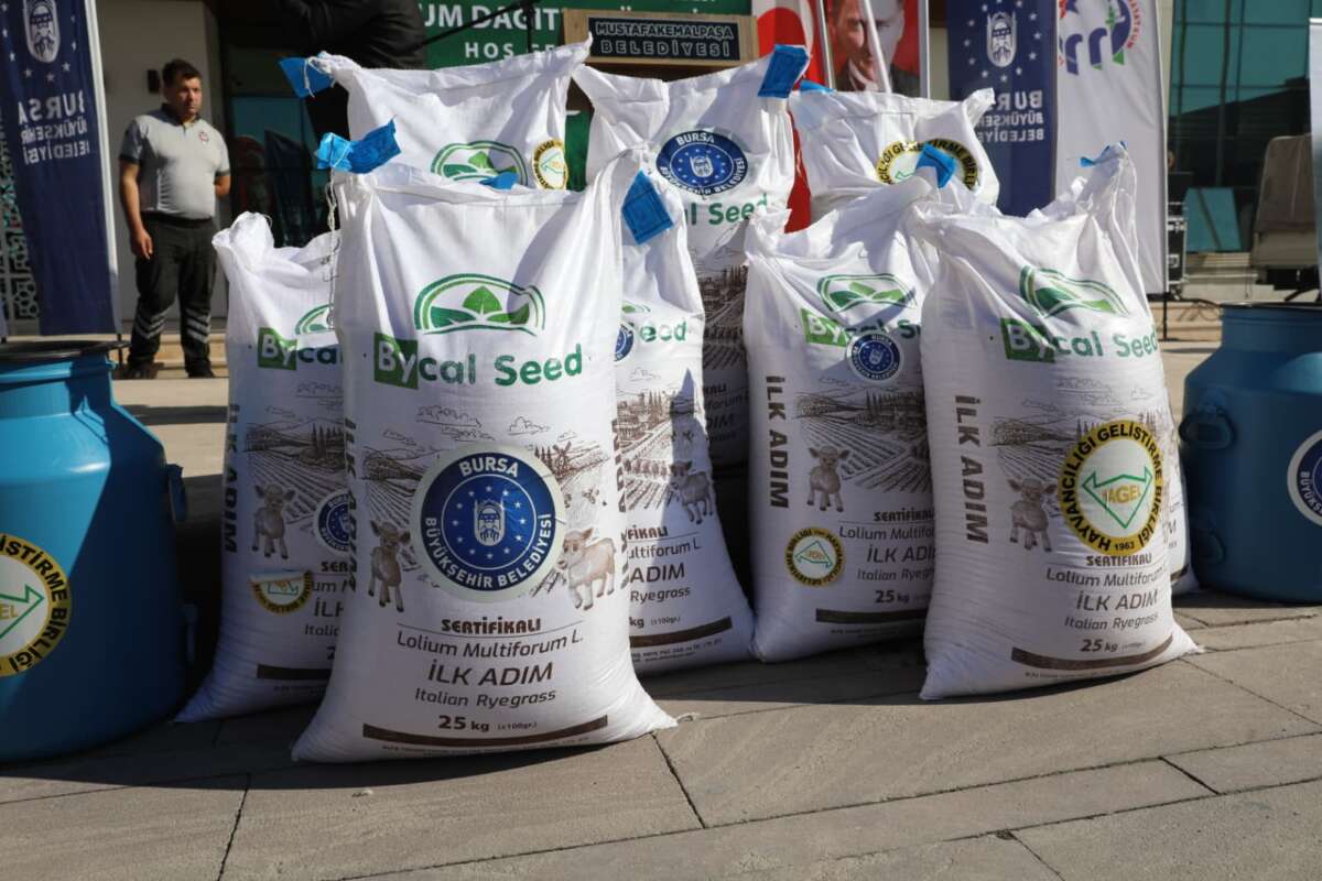 Bursa’da fide-fidan temininden kaliteli üretimin sağlanmasına, ekipman desteğinden yüzde yüz hibeli mazot dağıtımına kadar her konuda çiftçinin yanında olan Büyükşehir Belediyesi, Nilüfer ve Mudanya ilçelerinin ardından Mustafakemalpaşa ilçesindeki 200 üreticiye de 5 ton İtalyan çimi tohumu dağıttı.