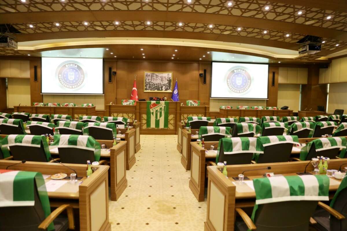 Sezon boyunca Bursaspor’a verdiği destekle dikkat çeken Bursa Büyükşehir Belediye Başkanı Mustafa Bozbey, takımın şampiyonluğunu Meclis’te de kutladı. Bugün gerçekleştirilen Nisan ayı Belediye Meclisi toplantısının 2. birleşimi öncesinde, meclis salonu yeşil-beyaz bayraklarla süslendi.
