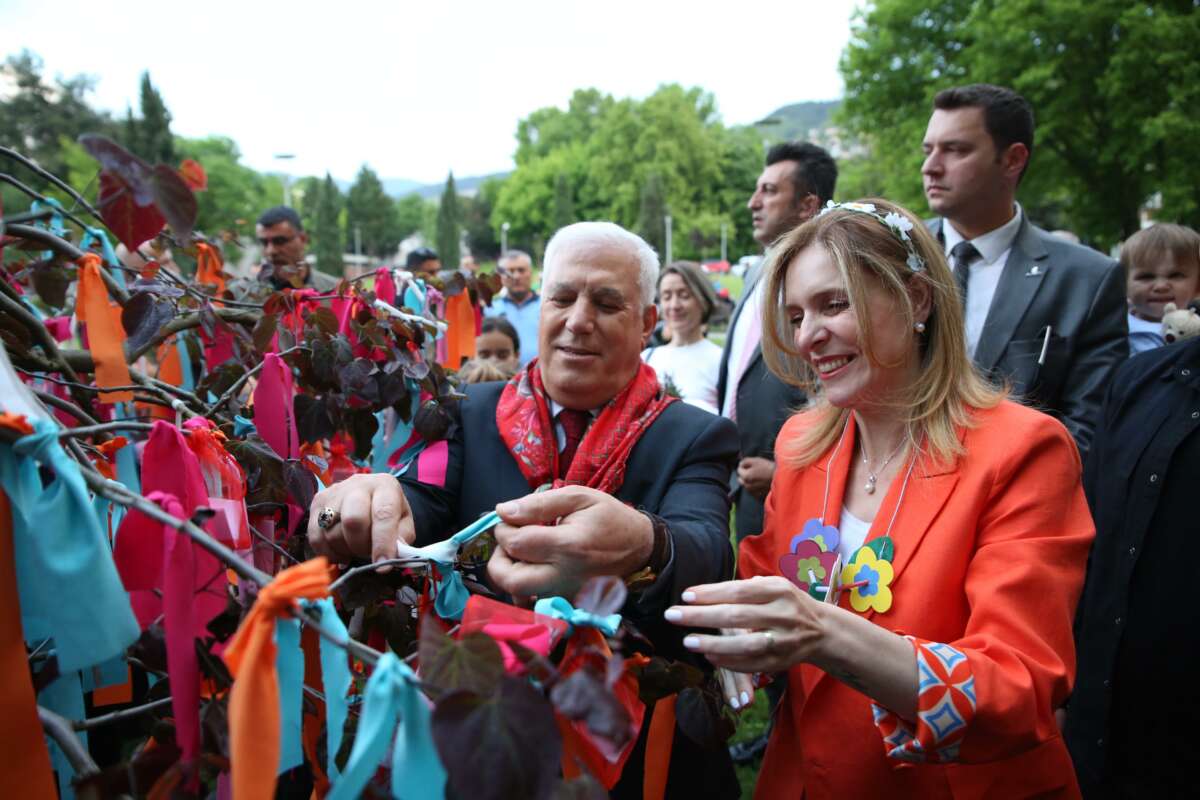 Etkinlik alanını eşi Seden Bozbey ile birlikte ziyaret eden Bursa Büyükşehir Belediye Başkanı Mustafa Bozbey, stantları tek tek gezerek vatandaşlarla sohbet etti. Günün anısına fidan diken Başkan Bozbey, kağıda yazdığı dileğini dilek ağacına kurdeleyle bağladı. Eşi Seden Bozbey ile birlikte ateşin üstünden de atlayan Başkan Bozbey, Hıdırellez coşkusunu doyasıya yaşadı. Kostüm yarışmasının kazananlarına ödüllerini veren Başkan Bozbey, Hıdırellez’in bu topraklarda yüzyıllardır kardeşçe yaşayanların ortak mirası olduğunu söyledi. Hıdırellez’i yaşatmanın geleceğe umutla bakmak demek olduğunu belirten Başkan Bozbey, “Bu güzel coğrafyanın ortak değerlerini hep birlikte koruyacağız. Tüm farklılıklarımızı yaşatarak güzel kentimizi hep birlikte yönetmeye ve büyütmeye devam edeceğiz. İnşallah tuttuğunuz dilekler gerçekleşir. Bizim en büyük dileğimiz, daha güçlü, daha mutlu, daha yeşil, daha yaşanabilir bir Bursa. Şenliği düzenlediğimiz Kültürpark da Bursa’nın merkezidir. Burada bir çoğumuzun hikayesi var. Kültürpark’ı eski işlevine kavuşturmak için etkinliklerimizi burada yapmaya başladık, yapmaya da devam edeceğiz” dedi.