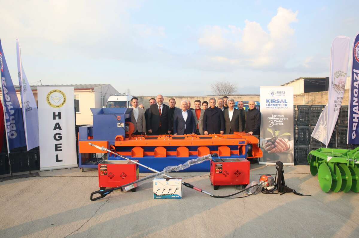 Bursa’da kırsal kalkınmanın sağlanması amacıyla fidan ve tohum temininden sulama borusu üretimine, ekipman desteğinden ürünlerin satış ve pazarlamasına kadar her alanda çiftçilere katkı sunan Büyükşehir Belediyesi, son olarak Kırsal Hizmetler Dairesi Başkanlığı ve Bursa İli Hayvancılığı Geliştirme Birliği (HAGEL) aracılığıyla Orhangazi ilçesine yaklaşık 500 bin TL değerinde ekipman desteğinde bulundu. Birer adet diskaro makinesi, zeytin eleme makinesi, taraklı zeytin toplama makinesi, zeytin toplama filesi, zeytin kasaları ve 2 adet salça makinesinin teslim edildiği programa, Bursa Büyükşehir Belediye Başkanı Mustafa Bozbey, Orhangazi Belediye Başkanı Bekir Aydın, Gemlik Belediye Başkanı Şükrü Deviren, Büyükşehir Belediyesi ve HAGEL yöneticileri katıldı.