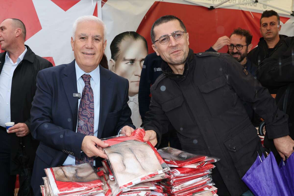Yağmura rağmen poster dağıtım etkinliğine yoğun ilgi gösteren vatandaşlarla sohbet eden Başkan Mustafa Bozbey, Cumhuriyet’in en büyük ortak değer olduğunu vurgulayarak, “17 ilçemizde 60 bin civarında Ata posteri dağıtıyoruz. Vatandaşlarımız iş yerlerini ve evlerini bu bayraklarla donacaktır. Cumhuriyet coşkusunun her yerde hissedilmesini sağlamalıyız. Cumhuriyet, bizlere Ulu Önder Mustafa Kemal Atatürk’ün en büyük armağanıdır. Bu armağana sahip çıkmak, onun ilke ve devrimlerini yaşatmak hepimizin en temel sorumluluğudur. Cumhuriyet Bayramı’nı coşkuyla kutlamak, aynı zamanda birlik, beraberlik ve umut duygularımızı tazelemektir. Bursa, her zaman olduğu gibi bu yıl da Cumhuriyetine sahip çıkıyor. Şimdiden Cumhuriyet Bayramımızı kutluyorum” dedi.
