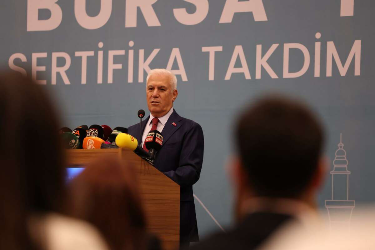 Törende ‘Bursa’nın akıllı şehir vizyonu’ başlıklı bir konuşma yapan MBB ve Bursa Büyükşehir Belediye Başkanı Mustafa Bozbey, Bursa’nın vizyon yolculuğunda çok önemli bir dönüm noktasını hep birlikte kutlamanın onurunu yaşadıklarını söyledi. Bursa’nın Akıllı Topluluk Forumu tarafından dünyanın en akıllı 7 topluluğu arasında gösterildiğini hatırlatan Başkan Bozbey, “Bu başarı yalnızca Bursamızın değil, ülkemizin de gururudur. Bursamız, Akıllı Topluluklar Top 7 arasında yer alarak Türkiye’de bu başarıyı elde eden ilk şehir oldu. Bursa’daki diğer tüm kurumların da katkıları sayesinde Bursamızın, dünyanın en akıllı 7 topluluğu arasında yer alma yolculuğunu daha güçlü ve etkili şekilde gerçekleştirdik” diye konuştu.