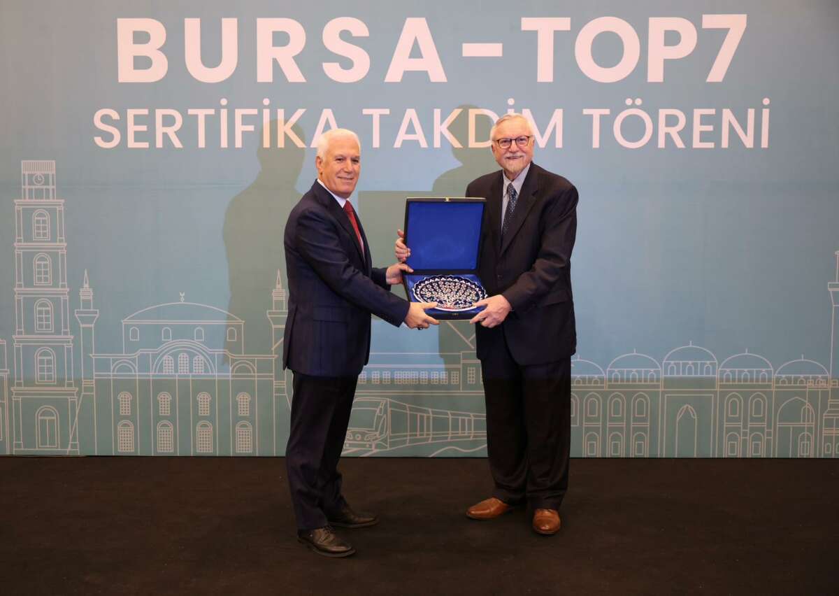 ICF tarafından Bursa’ya verilen ‘Top7’ unvanı için hazırlanan sertifika takdim törenine Atatürk Kültür Merkezi Merinos Yerleşkesi ev sahipliği yaptı. Programa, Marmara Belediyeler Birliği ve Bursa Büyükşehir Belediye Başkanı Mustafa Bozbey’in yanı sıra ICF Kurucu Ortağı John G. Jung, akademisyenler, iş dünyasının ve sivil toplum kuruluşlarının temsilcileri, Büyükşehir Belediyesi bürokratları katıldı. Programda, ‘Bursa’nın akıllı şehre dönüşümü’, ’Bursa Ticaret ve Sanayi Odası’, ‘ULUTEK-Teknopark’, ‘Bursa Erdem Saker Botanik Parkı’nın akıllı dönüşümü’ ve ‘ICF’ tanıtım filmlerinin gösterimi yapıldı.
